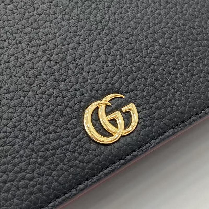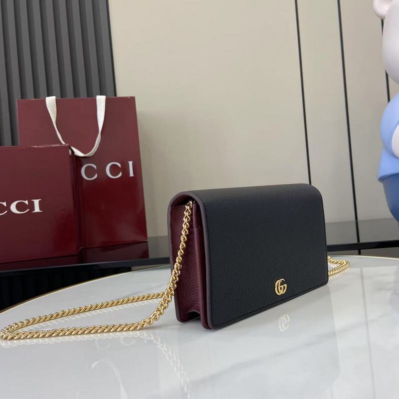 GG Marmont 시리즈 체인 지갑은 대비되는 컬러의 안감으로 눈길