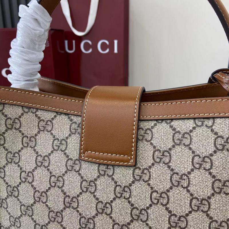 패드록 시리즈는 다양한 휴대 방식을 갖춘 세련된 가방으로 2026 프리폴 컬렉션에 화려함을 더합니다. 이 핸드백은 브랜드의 상징적인 패턴을 연상시키는 스트랩 안감으로 제작되었습니다. 베이지와 다크 브라운 GG 로고 패턴이 교차된 코팅 직물 갈색 가죽 롤링 마감 연한 골드 톤 액세서리 빨강과 초록 스트랩 면 안감 내부: 지퍼 포켓 1개 손잡이(높이 10cm) 탈부착 및 길이 조절 가능한 가죽 숄더 스트랩(높이: 114cm - 124cm 길이: 55cm - 60cm) 자물쇠식 잠금 장치 가죽 키링 포함 모델: 838992. 크기: 25.5cm(너비) x 17.5cm(높이) x 10cm(깊이) 무게: 약 0.6kg 색상: 브라운 PVC.