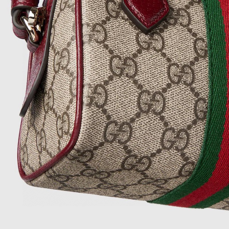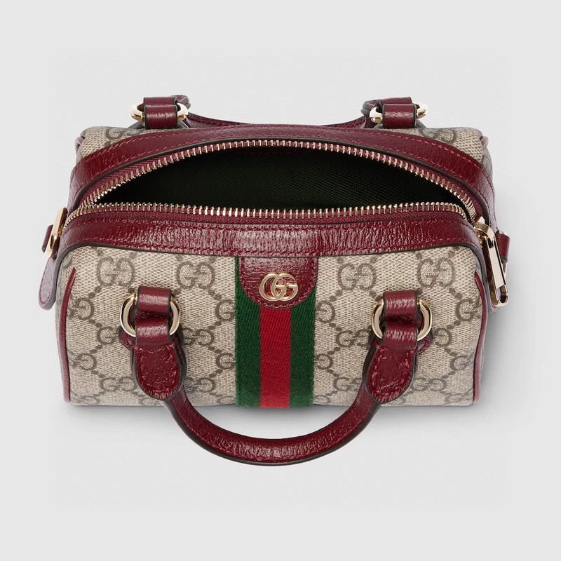 Ophidia 시리즈는 독창적인 실루엣과 기능성을 정교하게 구현하며 상징적인 베이지와 브라운 컬러 조합으로 부드러운 질감과 세련된 스타일의 가방 아이템을 완성합니다. 이 보스턴백은 미니 버전으로 디자인되었습니다. 베이지와 다크 브라운 GG 로고 패턴 코팅 직물 앙카라 레드 가죽 롤링 마감 옅은 골드 톤 액세서리 그린 리넨 코튼 혼방 안감 더블 G 직물 끈 손잡이(6cm 높이) 조절 가능한 가죽 숄더 스트랩 높이: 54cm 지퍼 여밈 모델: 838478. 크기: 16cm(너비) x 10cm(높이) x 9cm(깊이) 무게: 약 276g 색상: 브라운 안코라 레드/PVC.