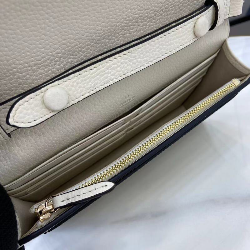 이 디오니소스 시리즈 체인 스트랩 지갑은 화이트 그레인 가죽으로 정교