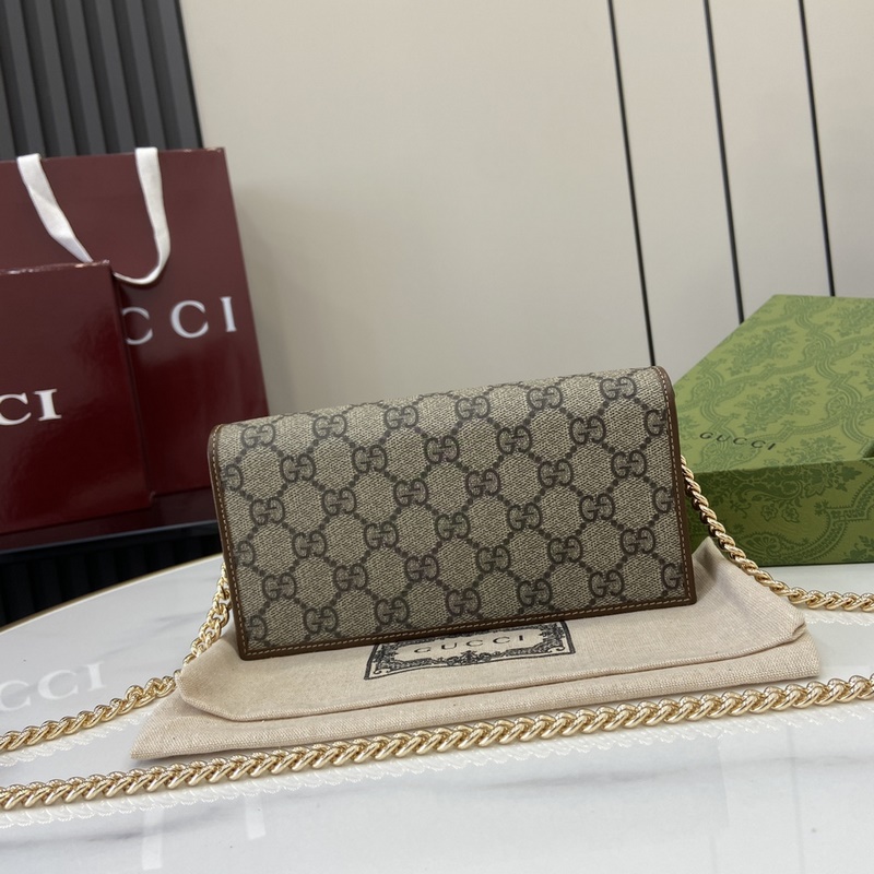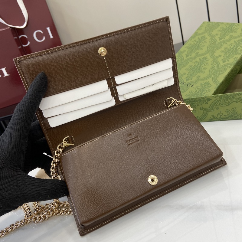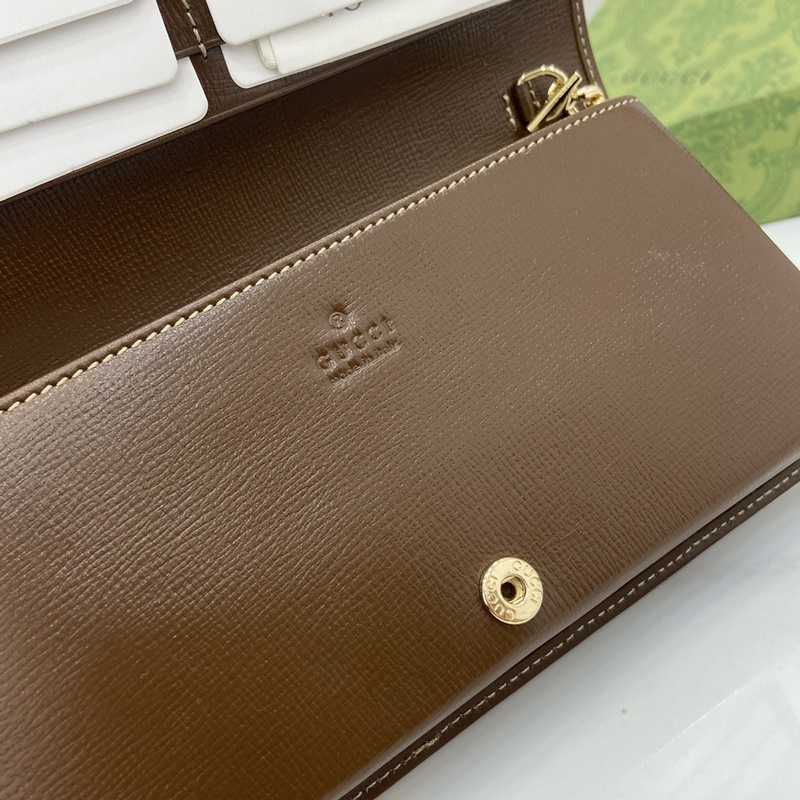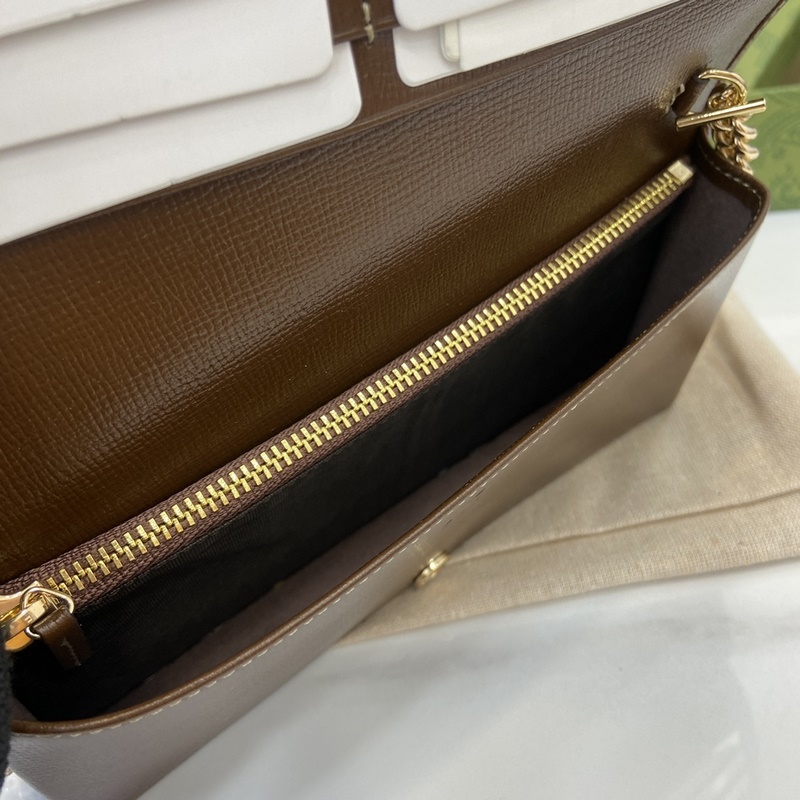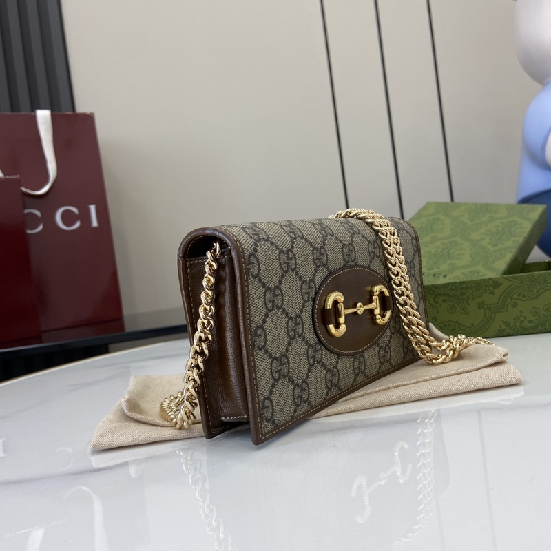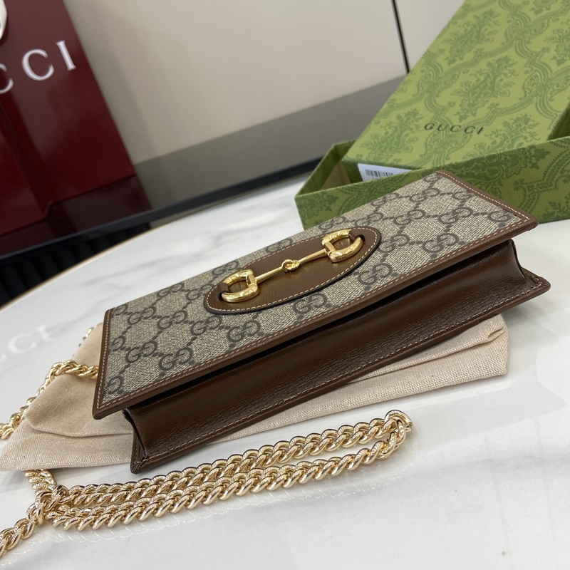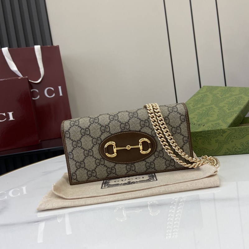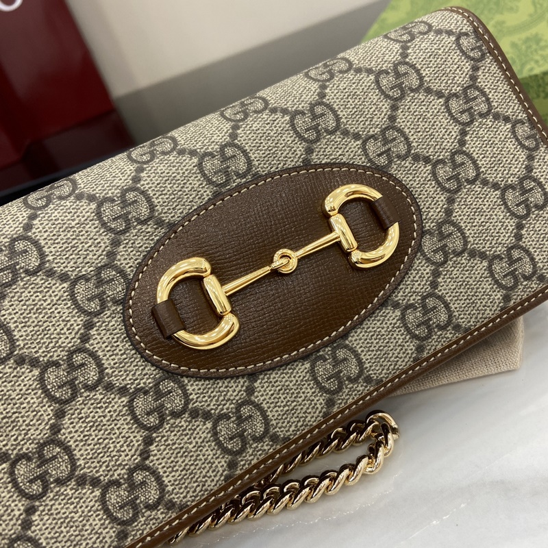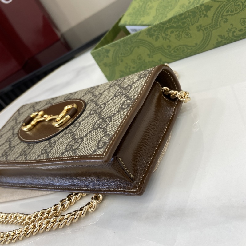 2026 봄/여름 시즌 구찌 호스빗 1955 시리즈 액세서리를 다채롭게 선보입니다. 베이지/에보니 GG 슈프림 캔버스 브라운 가죽 디테일 골드 톤 액세서리 구름 무늬 직물과 벨벳 소재 안감 말 고삐 디테일 내부: 카드 수납공간 6개 평평한 포켓 1개 지퍼 포켓 1개 오픈 수납공간 1개 지퍼 포켓 1개 오픈 포켓 1개 탈부착 가능한 체인 스트랩 높이 58cm 버튼 여밈 무게: 약 0.3kg 모델: 621892 열었을 때 크기: 19cm(가로) x 21cm(높이) x 2.5cm(깊이) 닫았을 때 크기: 19cm(가로) x 10cm(높이) x 4cm(깊이) 색상: 갈색/PVC.