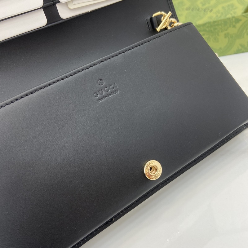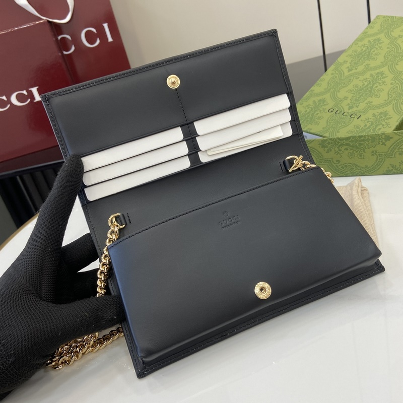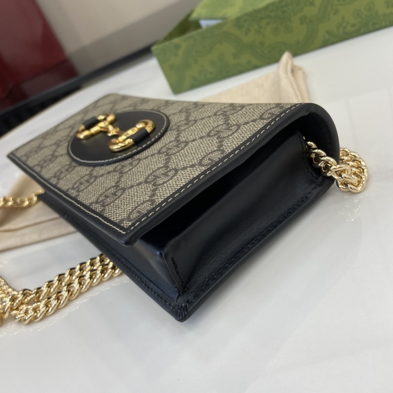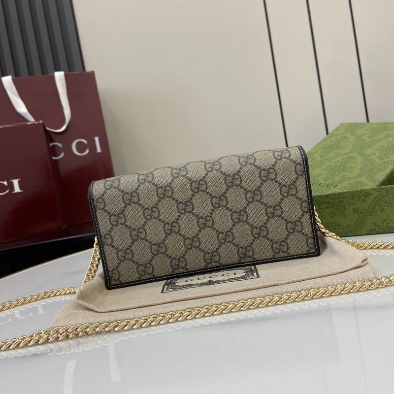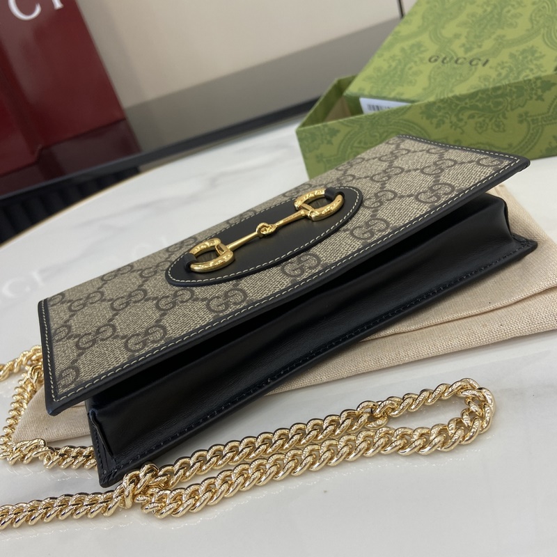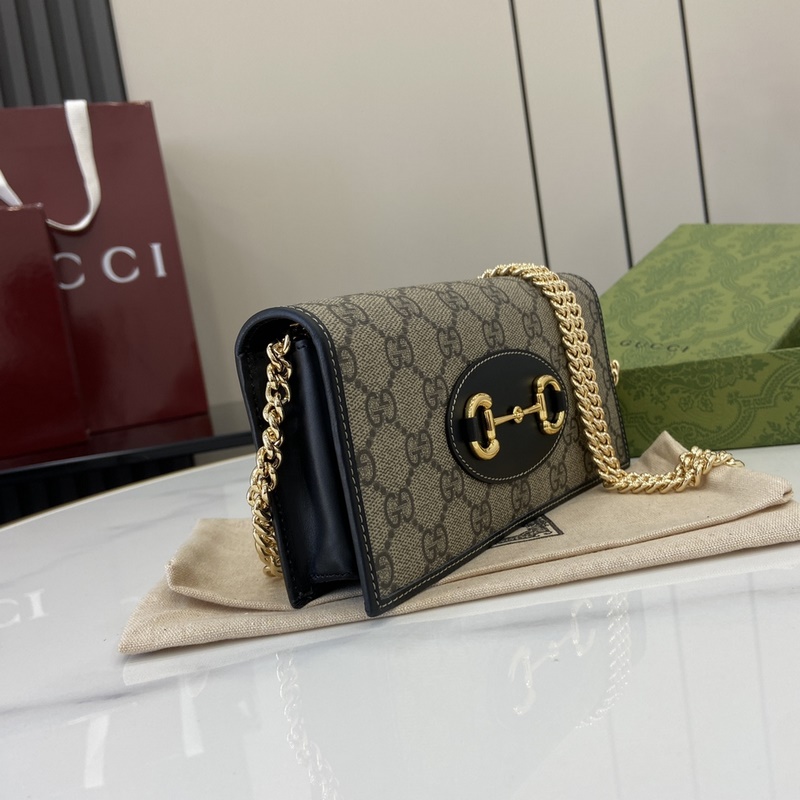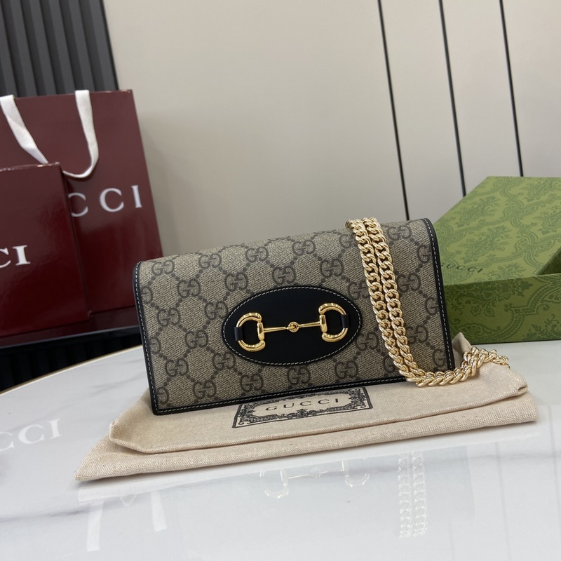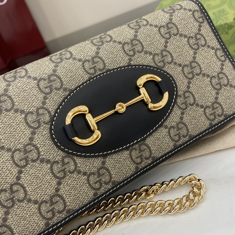 크리에이티브 디렉터 사바토 데 사르노가 선보이는 새로운 GG 로고 패턴 코팅 직물은 부드럽고 가벼우면서도 내구성이 뛰어난 정교한 소재를 구현합니다. 이 구찌 호스빗 1955 시리즈 체인 스트랩 지갑은 베이지와 다크 브라운 컬러로 정교하게 제작되었으며 우아한 블랙 가죽 롤링 디테일이 세련되게 어우러집니다. 베이지와 다크 브라운 컬러의 새로운 GG 로고 패턴 코팅 직물 블랙 가죽 롤링 마감 옅은 골드 톤 액세서리 구름 무늬 직물 안감 내부: 카드 수납공간 6개 평평한 포켓 1개 지퍼 포켓 1개 오픈 수납공간 1개 지퍼 포켓 1개 개방형 포켓 1개 탈부착 가능한 체인 스트랩 높이 58cm 스냅 버튼 개폐 무게: 약 0.3kg 모델: 621892. 열었을 때 크기: 19cm(가로) x 21cm(높이) x 2.5cm(깊이) 닫았을 때 크기: 19cm(가로) x 10cm(높이) x 4cm(깊이) 색상: 그레이/PVC.