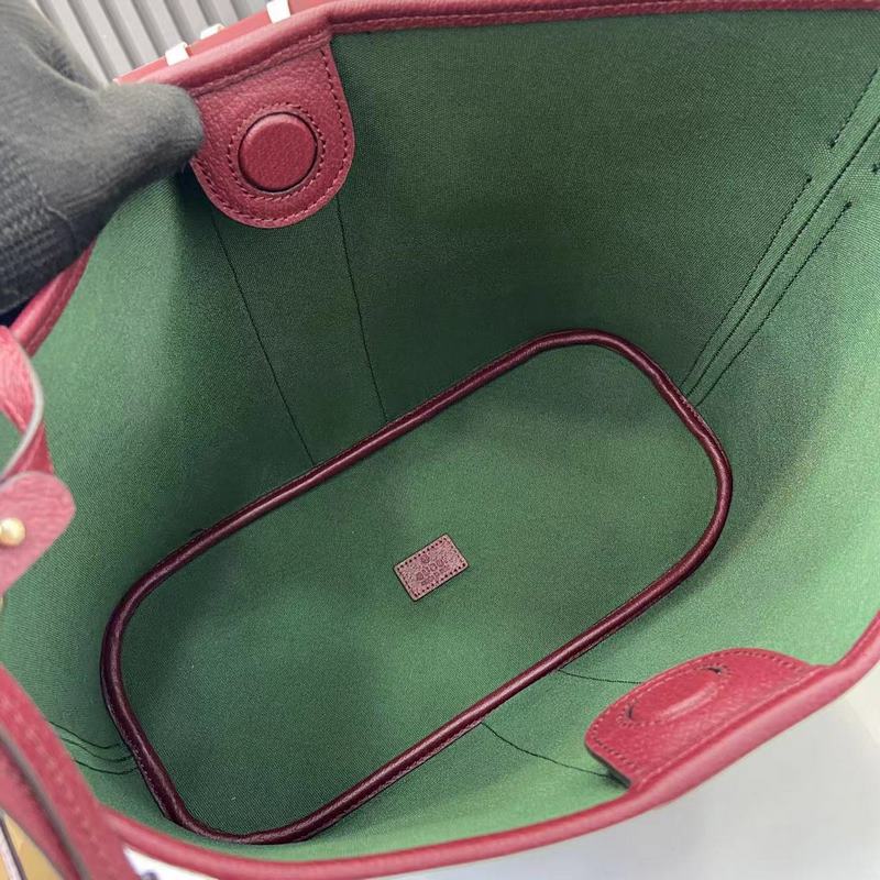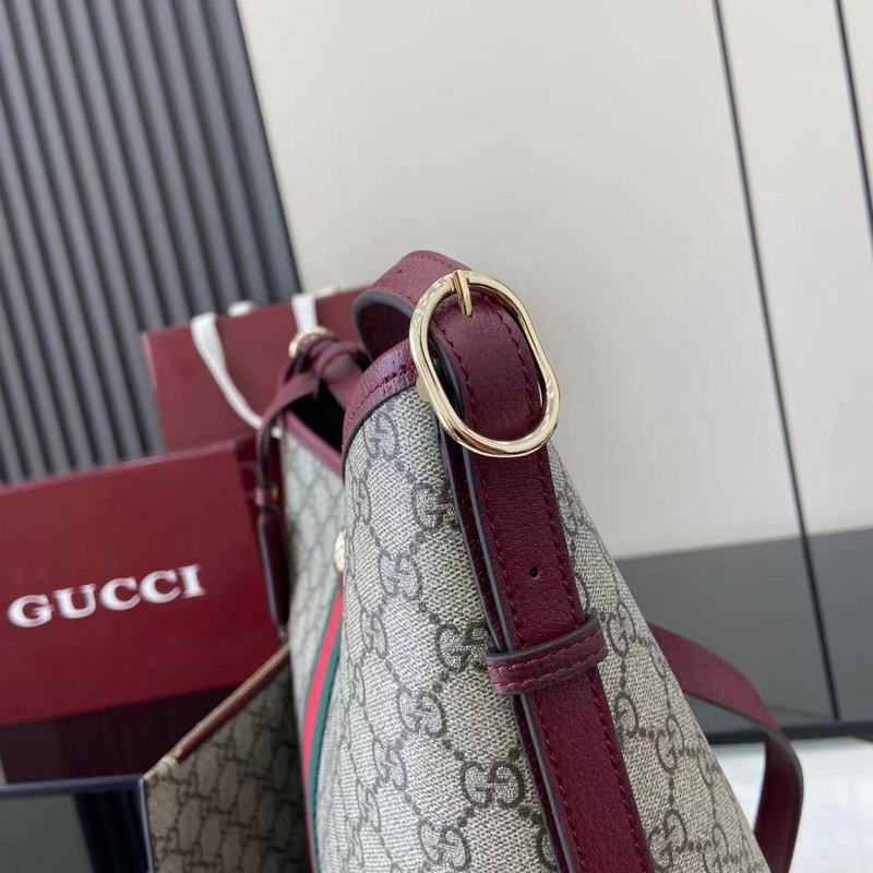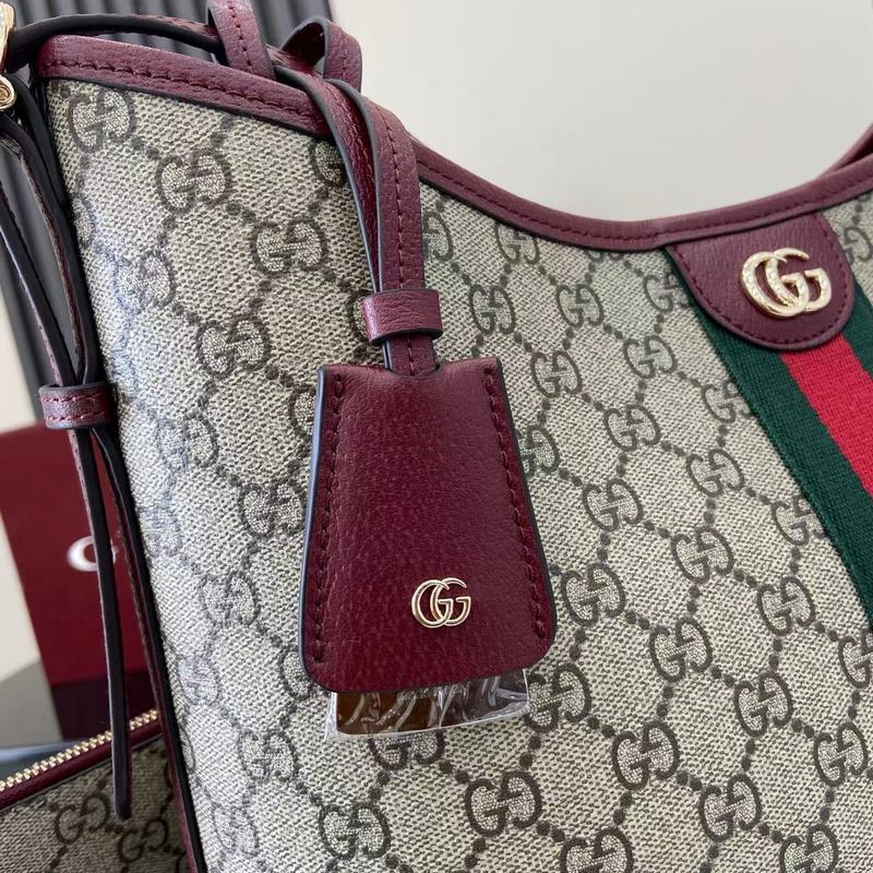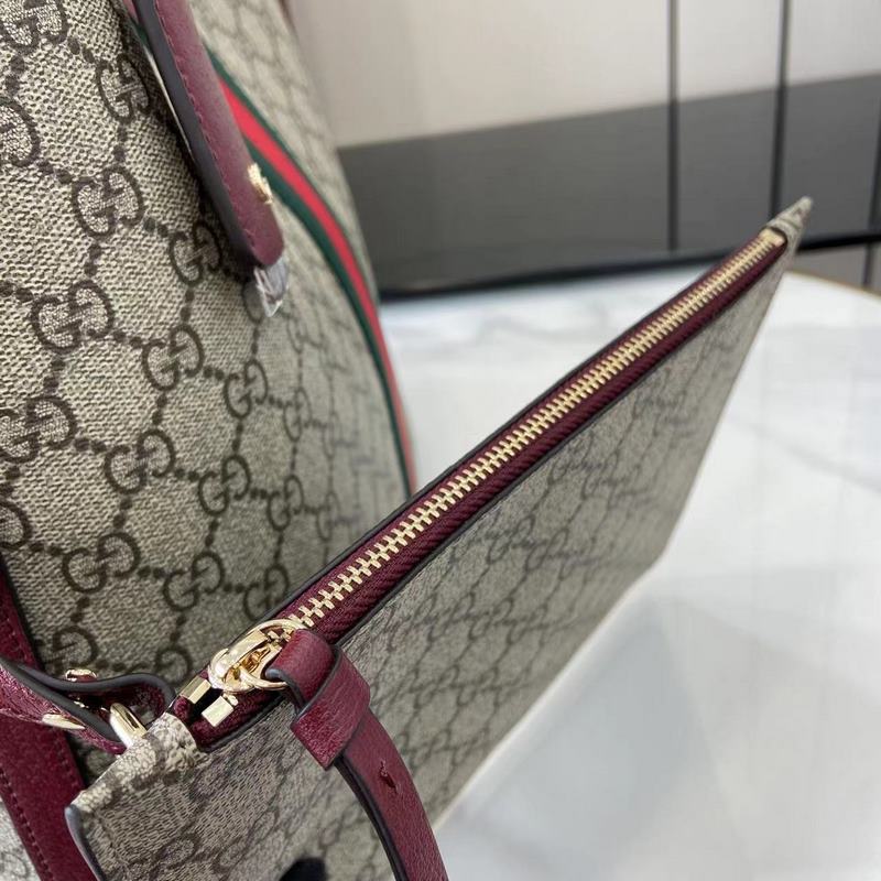 Ophidia 시리즈는 눈부신 실루엣과 기능성을 선보이며 상징적인 베이지와 브라운 컬러로 정교하게 연출된 부드러운 질감의 혁신적인 가방 아이템을 완성했습니다. 베이지와 다크 브라운 GG 캔버스 앙카라 레드 가죽 롤링 디테일 옅은 골드 톤 액세서리 그린 컬러 코튼 안감 더블 G 직조 밴드 숨겨진 자석 단추 모델: 836871. 사이즈: 33.5cm(가로) x 16cm(높이) x 30cm(깊이) 무게: 약 0.5kg 색상: 브라운/PVC.