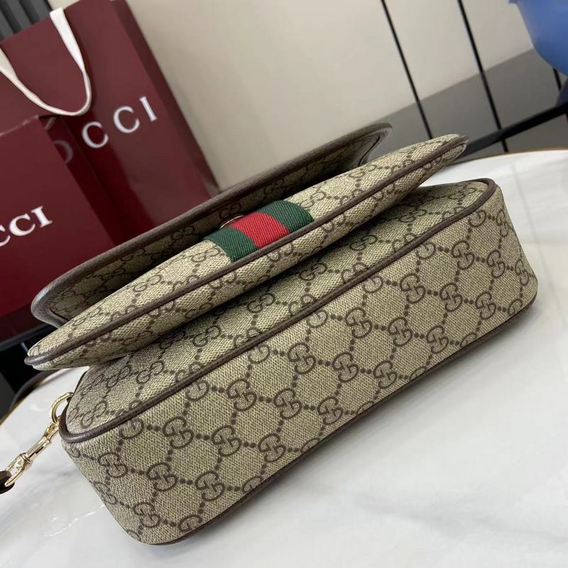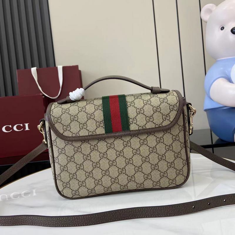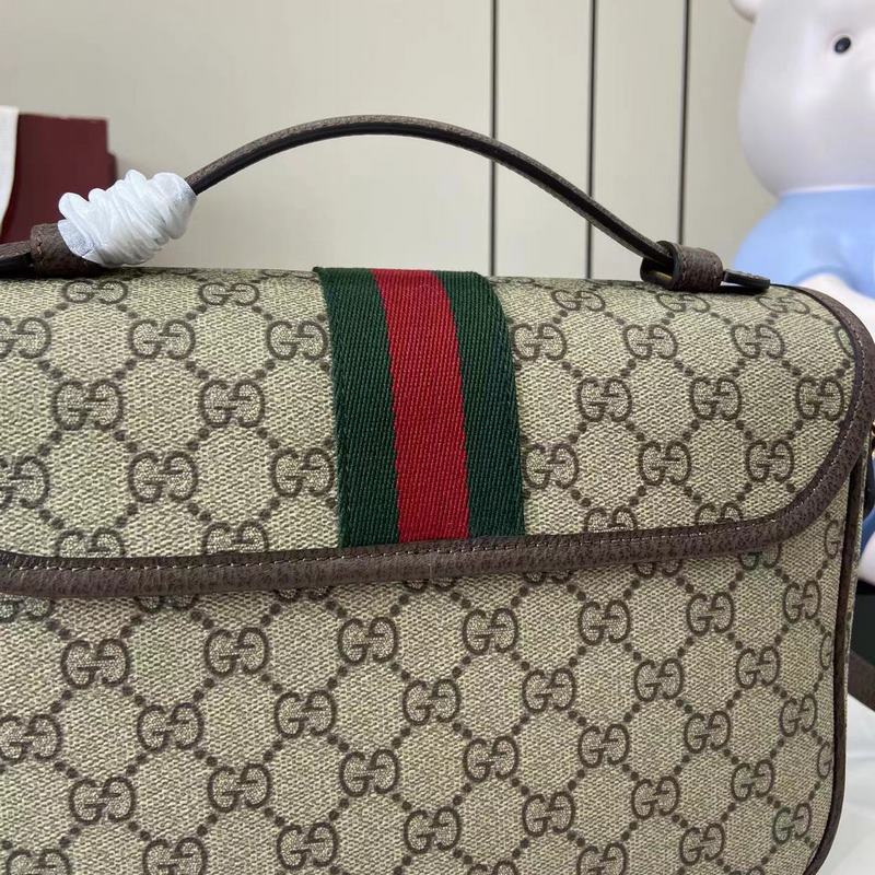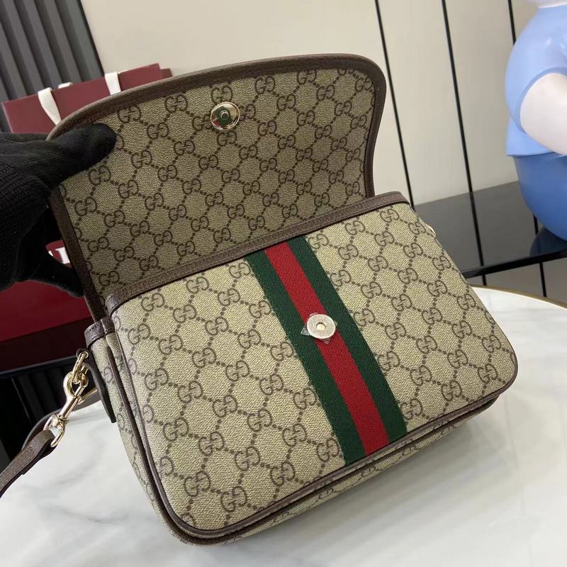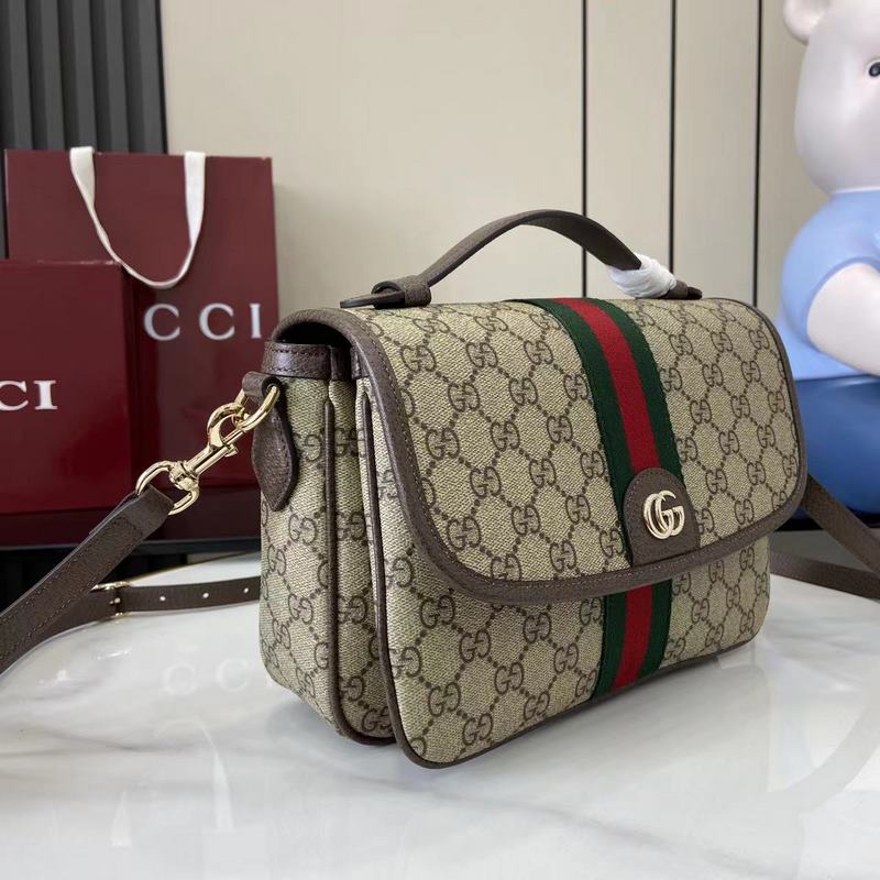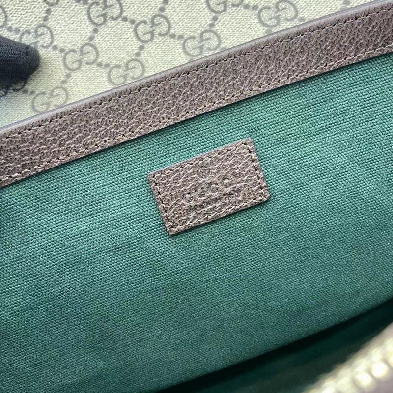 Ophidia 시리즈는 눈부신 실루엣과 기능성을 선보이며 상징적인 베이지와 브라운 컬러로 정교하게 연출된 부드러운 질감의 새로운 가방 아이템을 선보입니다. 베이지와 다크 브라운 GG 캔버스 브라운 가죽 롤링 디테일 옅은 골드 톤 액세서리 그린 컬러 코튼 안감 더블 G 내부: 오픈 포켓 1개 모델: 836842. 사이즈: 24cm(가로) x 17.5cm(높이) x 11.5cm(깊이) 무게: 약 0.55kg 색상: 브라운/PVC.