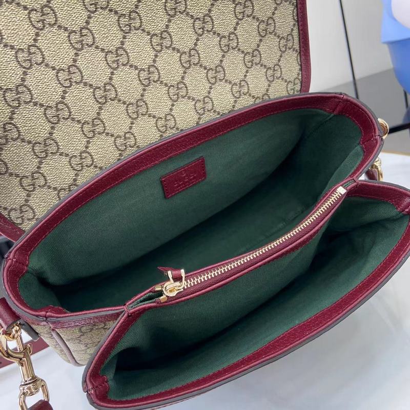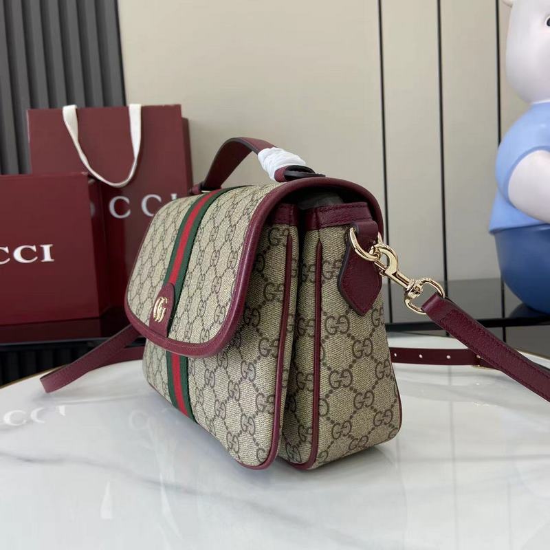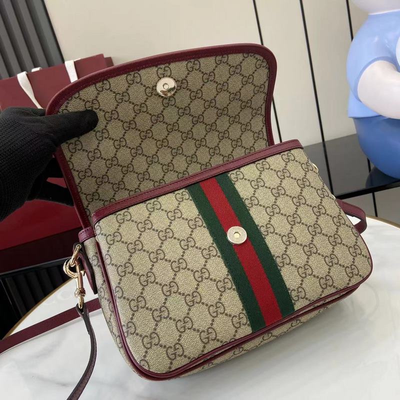 Ophidia 시리즈는 눈부신 실루엣과 기능성을 선보이며 상징적인 베이지와 브라운 컬러로 정교하게 연출된 부드러운 질감의 새로운 가방 아이템을 선보입니다. 베이지와 다크 브라운 GG 캔버스 앙카라 레드 가죽 롤링 디테일 옅은 골드 톤 액세서리 그린 컬러 코튼 안감 더블 G 내부: 오픈 포켓 1개 모델: 836842. 사이즈: 24cm(가로) x 17.5cm(높이) x 11.5cm(깊이) 무게: 약 0.55kg 색상: 브라운 안카라 레드/PVC.