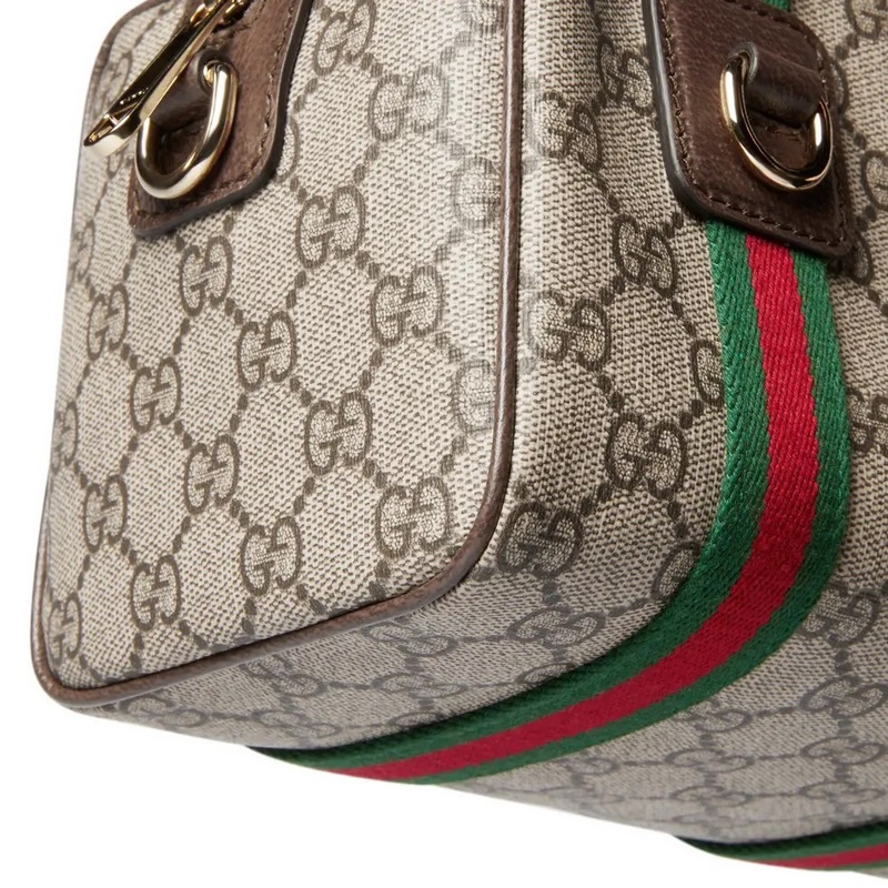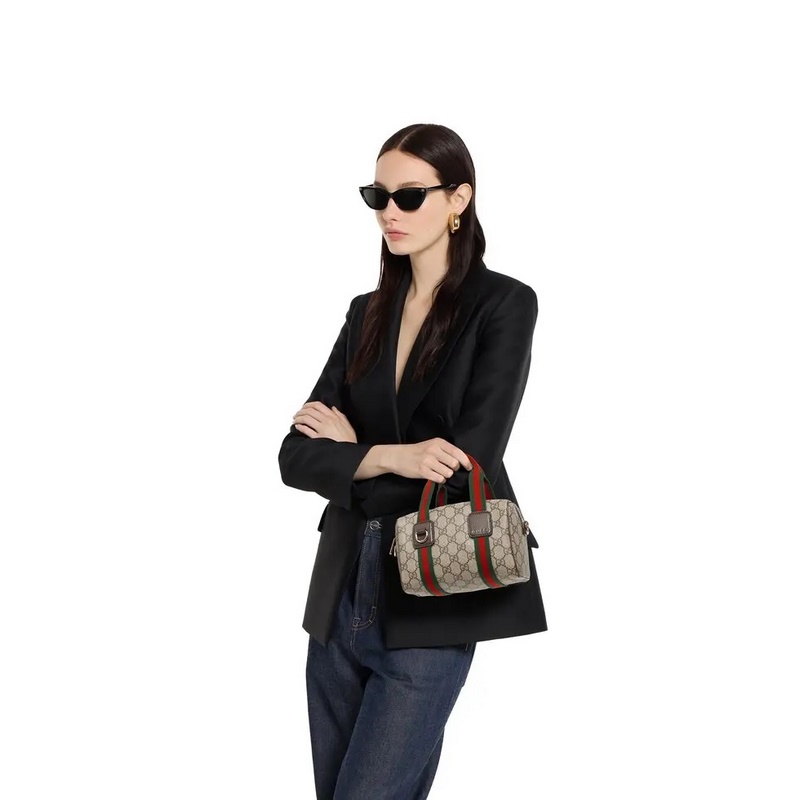 구찌의 상징적인 여행 가방 실루엣에서 영감을 받아 선보이는 미니 GG 핸드백. 부드러운 GG 프린트 캔버스 소재로 제작되었으며 웹 스트랩 핸들과 탈부착 가능한 숄더 스트랩이 특징입니다. 브랜드의 클래식한 요소를 재해석하여 구찌가 자랑스럽게 여기는 여행 전통에 경의를 표합니다. 베이지와 다크 브라운 GG 로고 패턴 코팅 직물 다크 브라운 가죽 롤링 마감 옅은 골드 톤 액세서리 그린 리넨 코튼 혼방 안감 손잡이(높이 10cm) 분리 및 조절 가능한 가죽 숄더 스트랩(높이 55cm 길이 101.5cm) 모델: 859975. 사이즈: 20cm(가로) x 13cm(높이) x 13cm(깊이) 무게: 약 0.4kg 색상: 브라운/PVC.