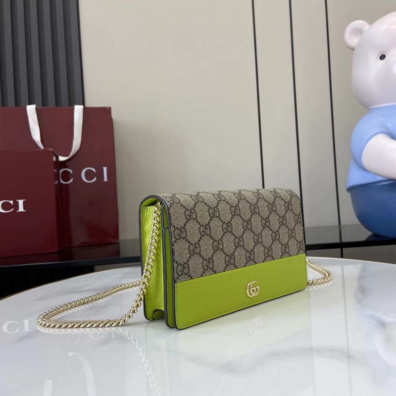 이 GG Marmont 시리즈 체인 스트랩 지갑은 구찌의 선명한 그린