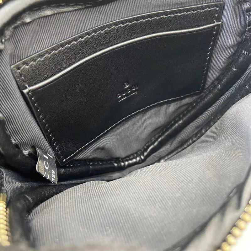 이 GG Marmont 시리즈 미니 핸드백은 장난기 넘치는 사랑스러운 하트 실루엣으로 부드러운 블랙 V-타입 마텔라세 소가죽으로 정교하게 제작되었습니다. 간결하고 컴팩트한 디자인에 옅은 골드 톤의 시그니처 더블 G 디테일이 더해졌습니다. 블랙 퀼팅 V자형 소가죽 옅은 골드 톤 디테일 브라운 타프타 안감 더블 G 내부: 카드 수납공간 1개 손잡이(8cm 높이) 탈부착 가능 조절 가능한 숄더 스트랩(48cm 높이) 지퍼 여밈 무게: 약 0.162kg 모델: 837753 사이즈: 13.5cm(가로) x 11.5cm(높이) x 2.5cm(깊이) 색상: 블랙 풀 가죽.