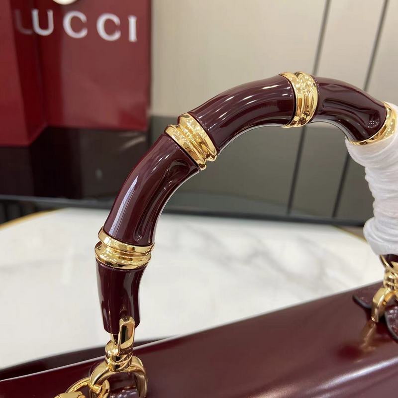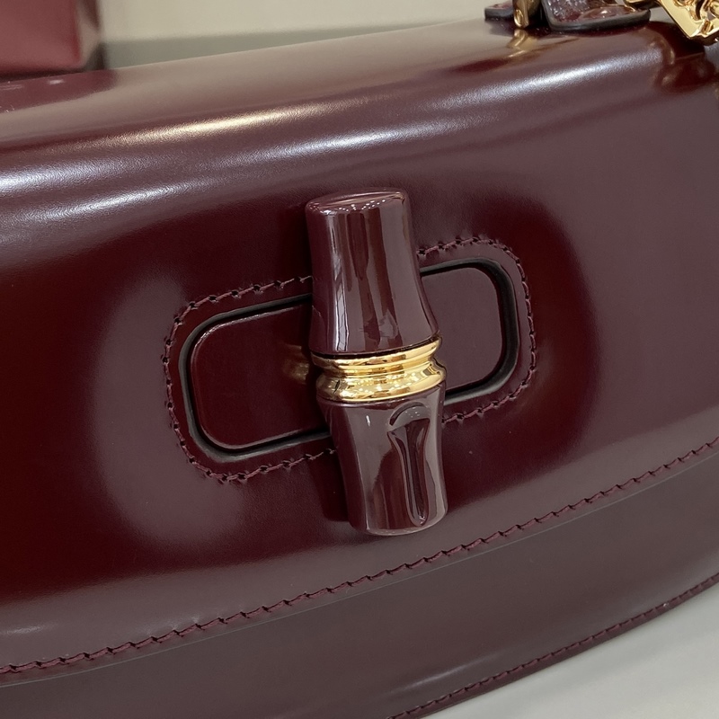 이 소형 핸드백은 레진과 황동 디테일로 상징적인 대나무 모양 액세서리