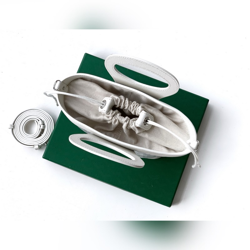 고야의 신상 장바구니 벨루가 미니 백은 일상생활을 개선하기 위해 디자인되었습니다. 면과 리넨 소재의 내부 포켓과 절제된 실용적인 드로우스트링이 개인 소지품을 안전하게 보관해 줍니다. 두 개의 가죽 핸들은 브랜드의 클래식한 여행 가방을 연상시키며 편안한 그립감을 선사합니다. 탈부착 및 길이 조절이 가능한 가죽 숄더 스트랩으로 숄더백 또는 크로스백으로도 활용 가능합니다. 23 cm × 8 cm × 18.5 cm 8070-화이트