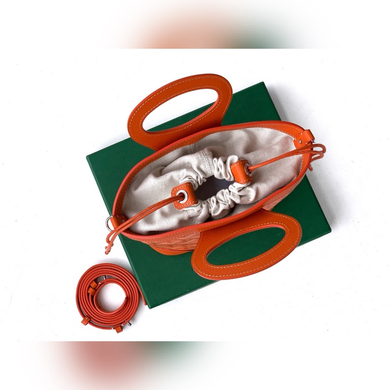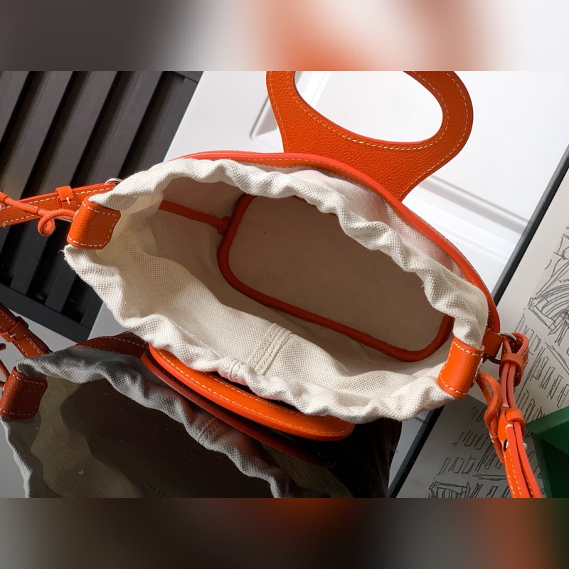 고야 신상 장바구니 벨루가 미니 백은 일상생활 개선을 위해 디자인되었습니다. 면과 리넨 소재의 내부 포켓과 절제된 실용적인 드로우스트링이 개인 소지품의 안전을 보장합니다. 두 개의 가죽 핸들은 브랜드의 클래식한 여행 가방을 연상시키며 편안한 그립감을 선사합니다. 탈부착 및 길이 조절이 가능한 가죽 숄더 스트랩으로 숄더백 또는 크로스백으로도 활용 가능합니다. 23 cm × 8 cm × 18.5 cm 8070-오렌지