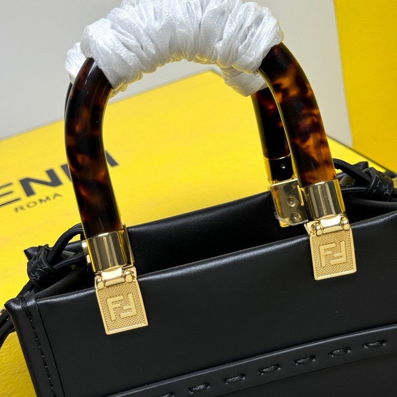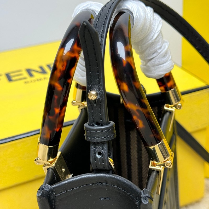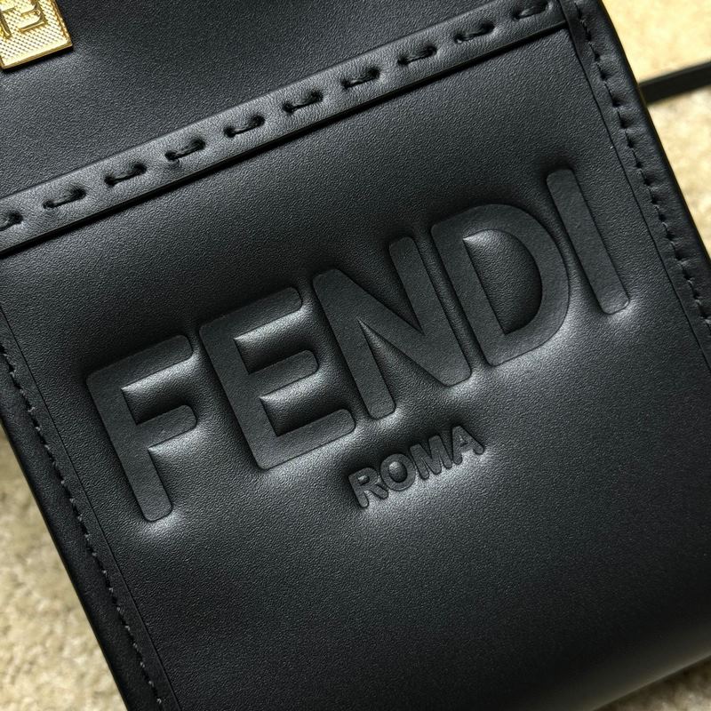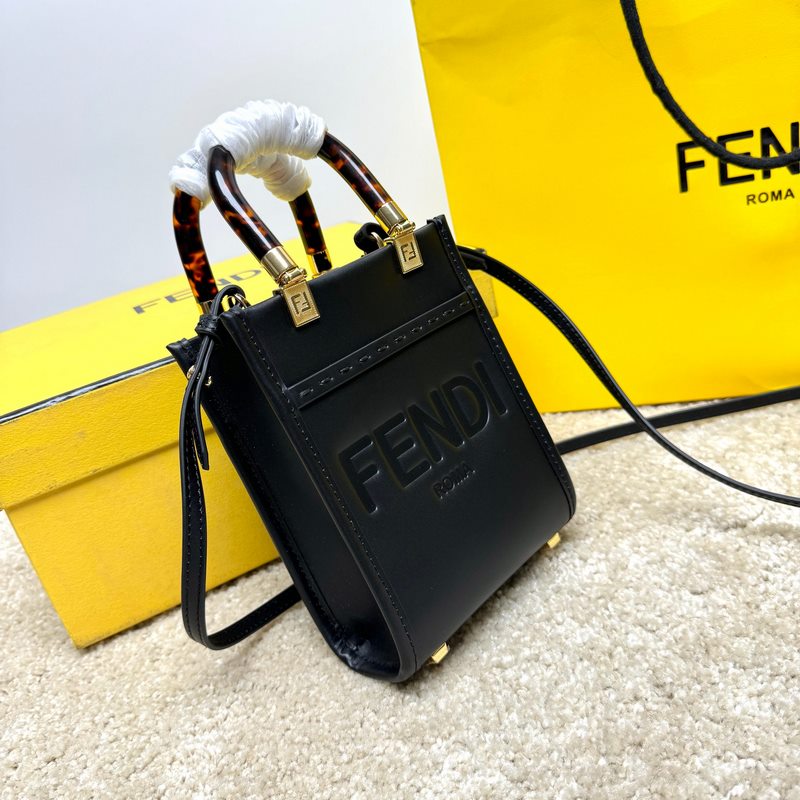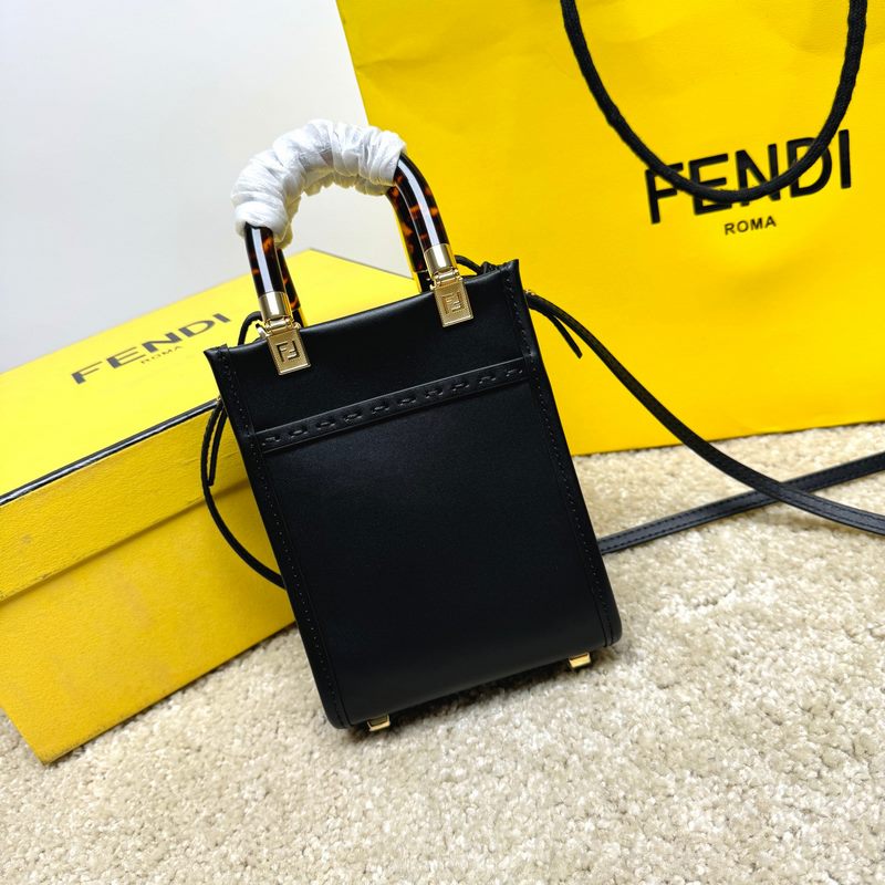 원단 Sunshin 블랙 가죽 미니 핸드백 FENDI ROMA 로고