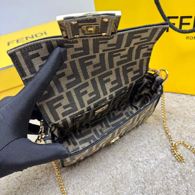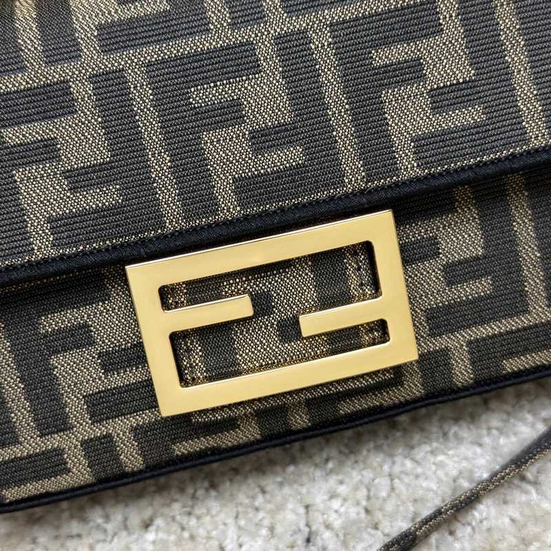 펜디의 상징적인 바게트 미디엄 핸드백은 플랩 디자인에 FF 자석 버클