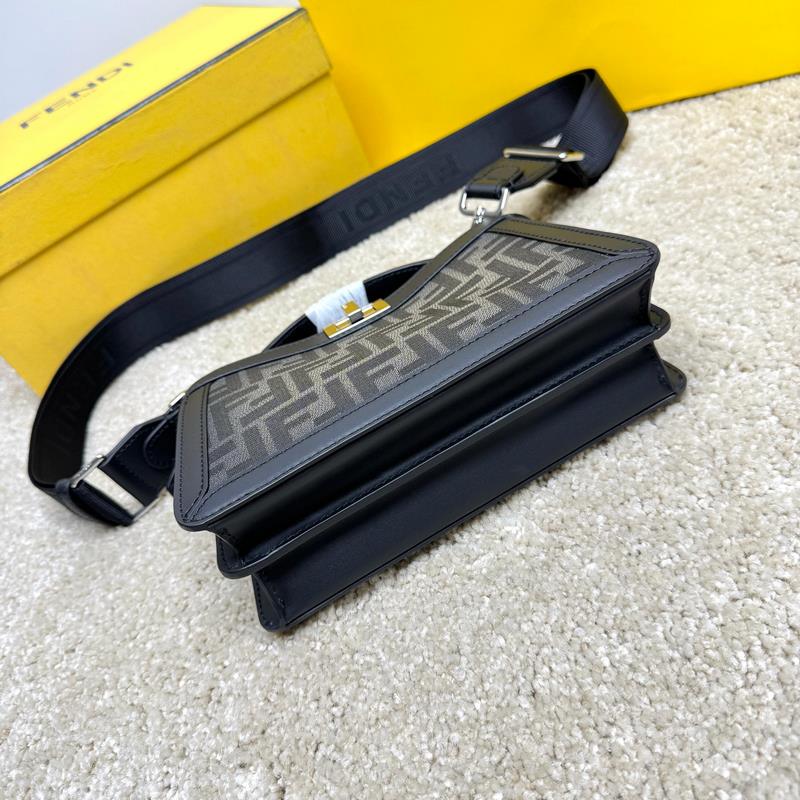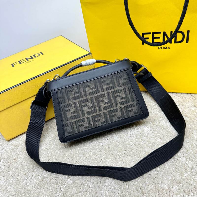 아이코닉한 Peekaboo ISeeU XCross 핸드백 패브릭 소재로 제작되었으며 가장자리에 수작업으로 그라데이션 처리된 FF Eclissi 자수 패턴이 장식되어 있습니다. 디테일에는 블랙 가죽 장식이 적용되었습니다. 내부에는 두 개의 하드 칸막이 수납공간이 있으며 정면에는 클래식 트위스트 잠금장치가 후면에는 지퍼 개폐 방식이 적용되었습니다. 블랙 가죽 안감 처리되었으며 내부 두 개의 수납공간은 하드 칸막이로 분리되어 있습니다. 브라운 가죽 카드 슬롯과 실버 마감 금속 부품이 장착되었습니다. 손잡이와 FENDI 로고가 새겨진 조절 및 탈부착 가능한 직물 숄더 스트랩이 포함되어 손잡이로 들거나 어깨에 메고 다닐 수 있습니다. 사이즈: 23 x 6 x 14.5cm 모델: 7va582 그라데이션
