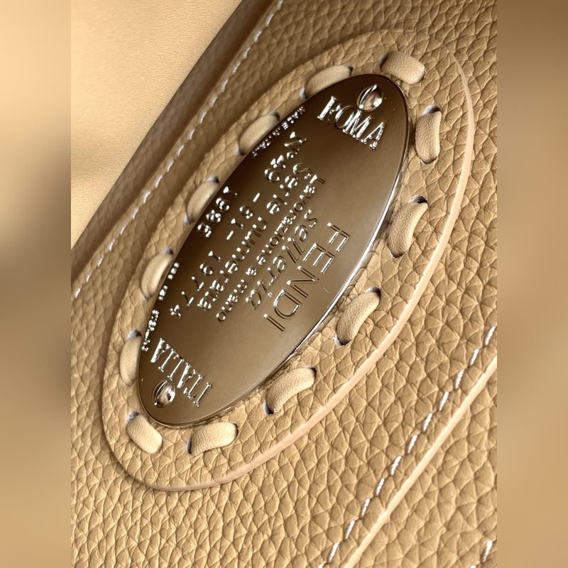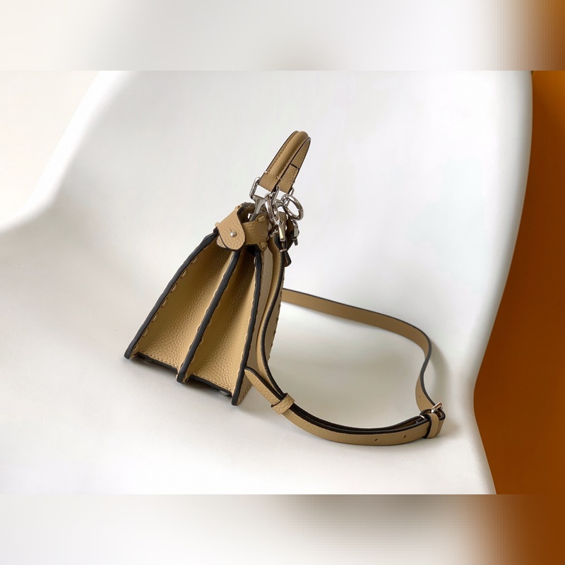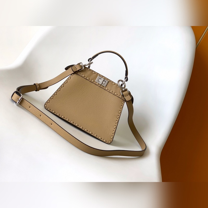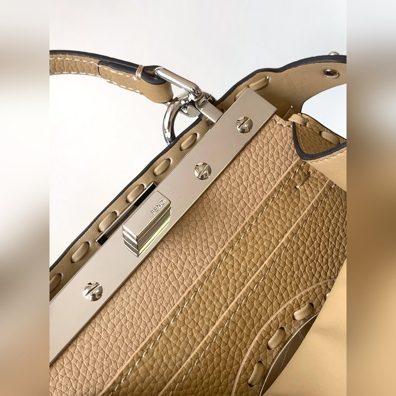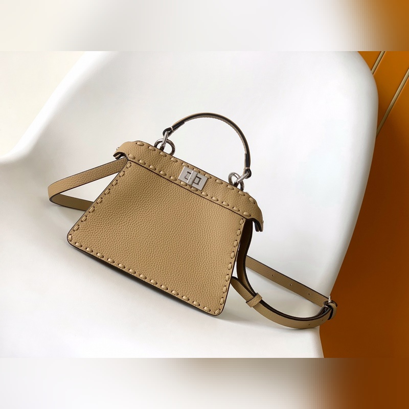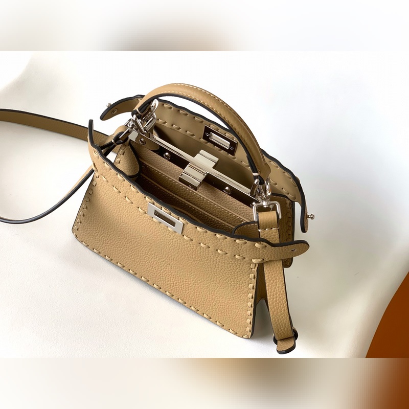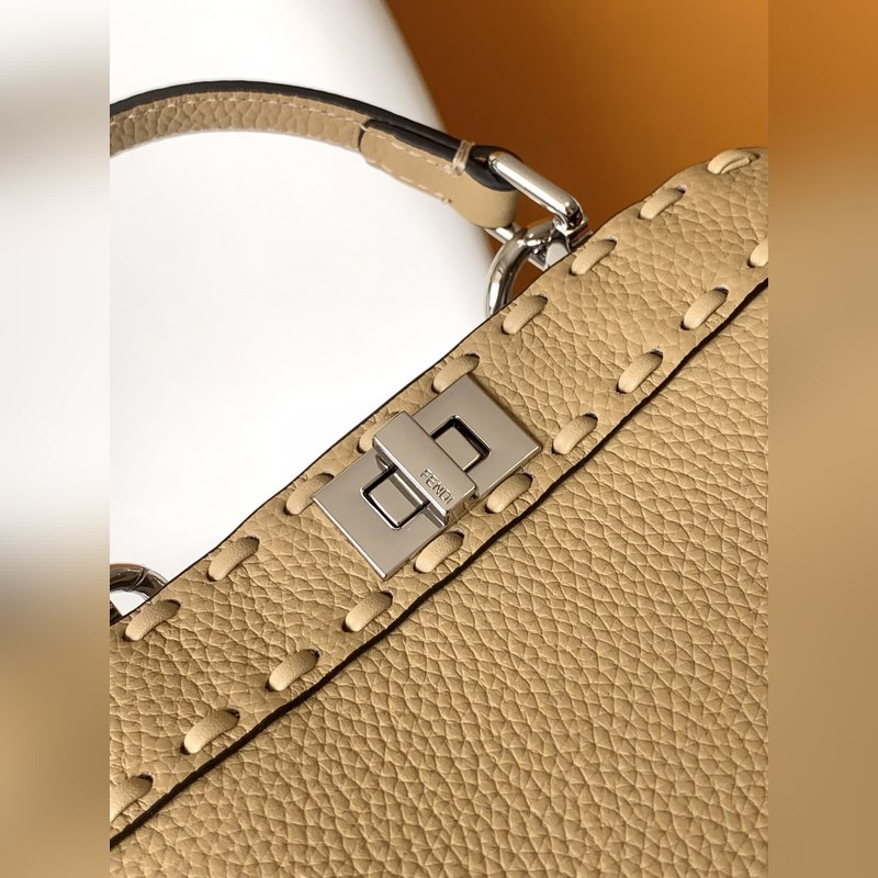 앵두색 Fend Iconic Peekaboo ISeeU Mini 수입 소가죽 소재 동일 색상 대형 스티치 수작업 제작 클래식 트위스트 잠금장치 장식 두 개의 수납공간 손잡이와 조절 가능 탈부착식 숄더 스트랩 포함 핸드백 또는 크로스백으로 사용 가능 Size: 20-11-15.5cm 모델 번호: 327s