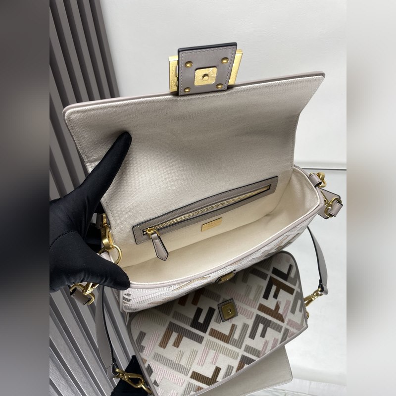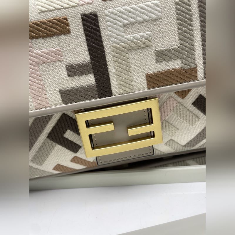 펜디 한정판 컬러 자수 바게트 바게트 백은 패션계에서 빠질 수 없는 클래식한 디자인으로 컬러풀한 자수 디테일이 특징입니다. 레트로 감성의 밀크티 컬러 베이스가 독특한 매력을 더합니다! 0159B89 사이즈 26x13x6cm