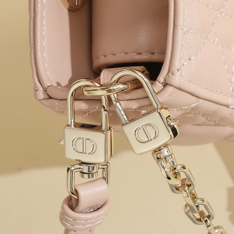 핑크색 양가죽 바구니 무늬 번호: S0910ONGE_M900 이 레이디 디조이 핸드백은 레이디 디올 컬렉션의 미니멀한 미학을 강조하며 디올의 우아함과 아름다움에 대한 깊은 통찰을 집약적으로 보여줍니다. 핑크색 양가죽으로 정교하게 제작되었으며 라탄 무늬의 마감 처리된 실로 장식되어 있습니다. 은은한 골드 컬러의 메탈 D.I.O.R. 펜던트가 고급스러운 분위기를 더하며 우아한 실루엣에 생동감을 불어넣습니다. 소형 사이즈로 탈부착 가능한 체인 스트랩과 조절 및 탈부착 가능한 가죽 숄더 스트랩이 함께 제공되어 핸드백 숄더백 크로스백으로 활용 가능하여 일상적인 스타일링에 이상적입니다. 분리 가능한 체인 숄더 스트랩은 분리 가능하며 조절 가능한 가죽 숄더 스트랩 먼지 방지 파우치 포함 사이즈: 16 x 9 x 5cm