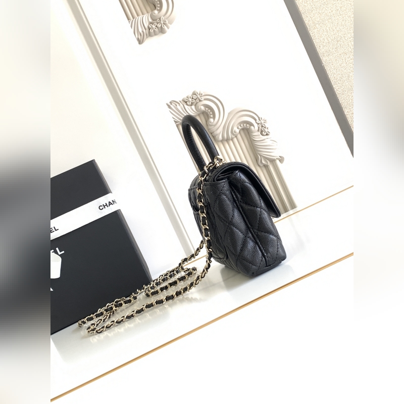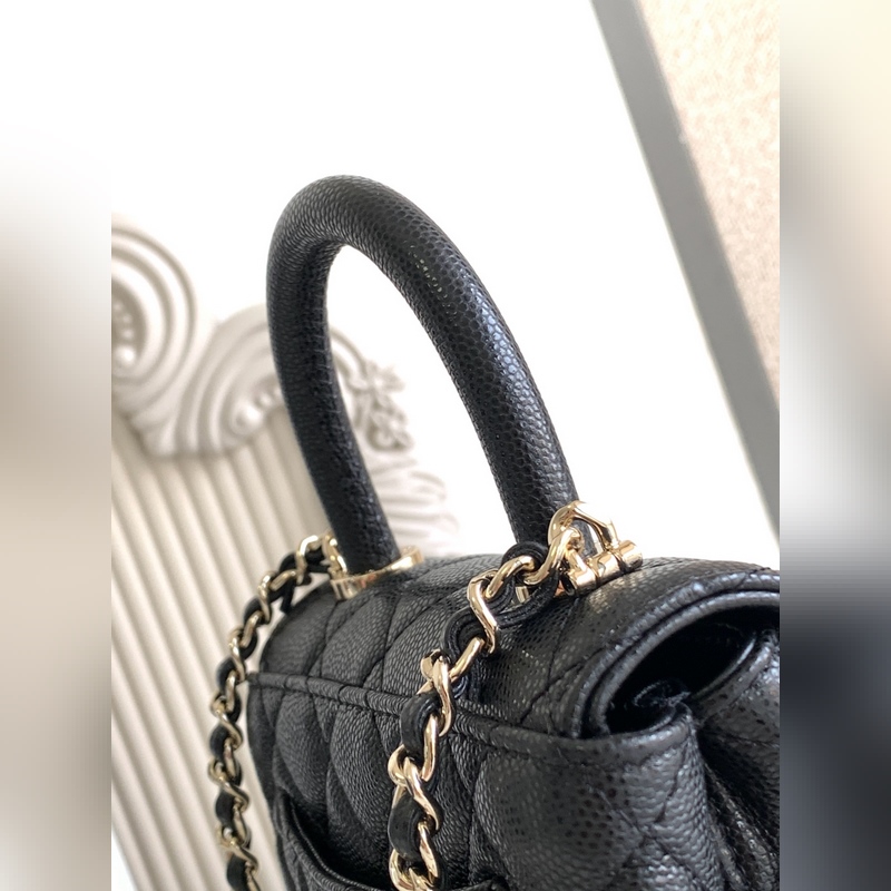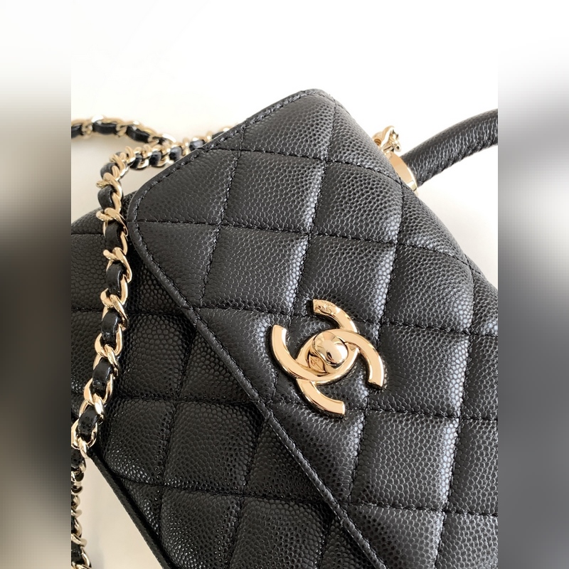 CN IT FR 4244 가죽 가장자리 안감에 양가죽 사용 코코 핸들 뚜껑이 있는 핸드백 코코 핸들 클래식 디자인은 거의 최강 이제 사이즈가 더 부드럽고 귀여워져서 완전 꽂혔어요!!! 손목 부분에 볼 패턴과 작은 볼 무늬 소가죽 14k 연한 골드 버클 AS4244 사이즈: 11.5x14.5x5.5cm