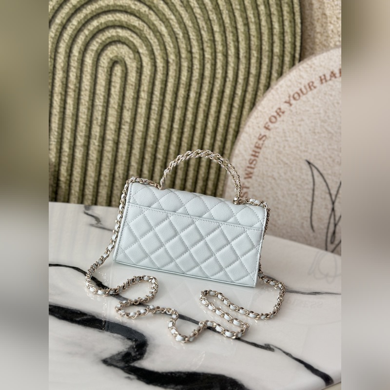 옅은 파란색 캐비어 가죽 독점 출고 Chane10 25s 신형 크로스 핸들 켈리 가죽 횡판 대형 이번 시즌 꼭 사야 할 켈리 가로판 플립 디자인은 복고적이면서도 세련됐고 가죽과 체인이 교차된 핸들은 정말 아름다워요. 고급스러움이 가득하고 손에 쥐는 감촉도 최고! 숄더백으로든 핸드백으로든 어떤 자리에도 완벽하게 어울립니다! 숨 막히게 아름다운 외관뿐만 아니라 내부 공간도 매우 실용적이라 일상생활에 필요한 물품을 가볍게 수납할 수 있어요~ 제품번호: 66055 사이즈: 18*10*4.5cm 포장 포함: