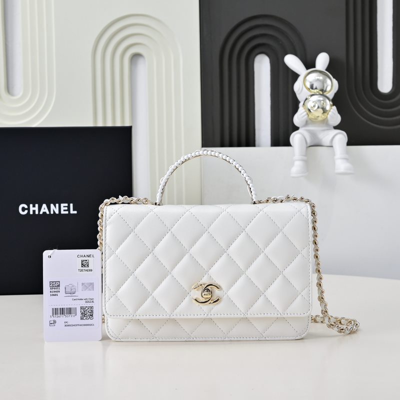 25P 신상 엮인 핸들 WOC 각각 독특한 포인트와 세심한 디테일 포인트와 세심한 디테일 컬러 작은 더블 C 로고 전체 가방에 클래식한 요소가 가득하며 핸들이 포인트! 정교함 속에 절제된 고급스러움을 드러냅니다! 실물이 정말 예뻐요 내부에는 작은 거울이 있어 외출 시 메이크업 수정하기 편리합니다 핸드백으로 들거나 크로스백으로 메어도 몸에 잘 맞는 느낌! 귀엽고 실용적인 소형 가방입니다 4451 사이즈: 19cm