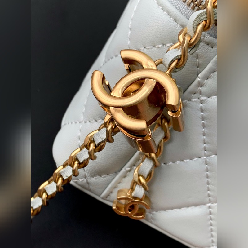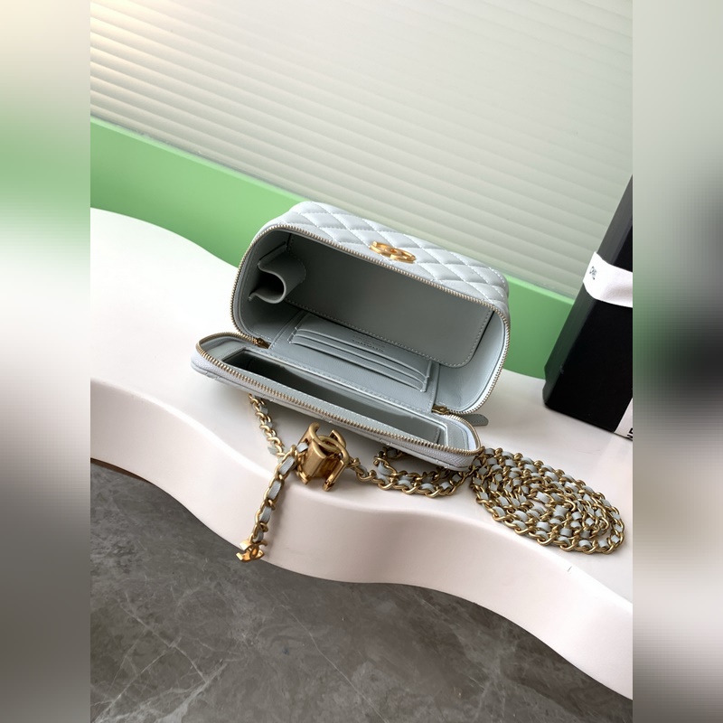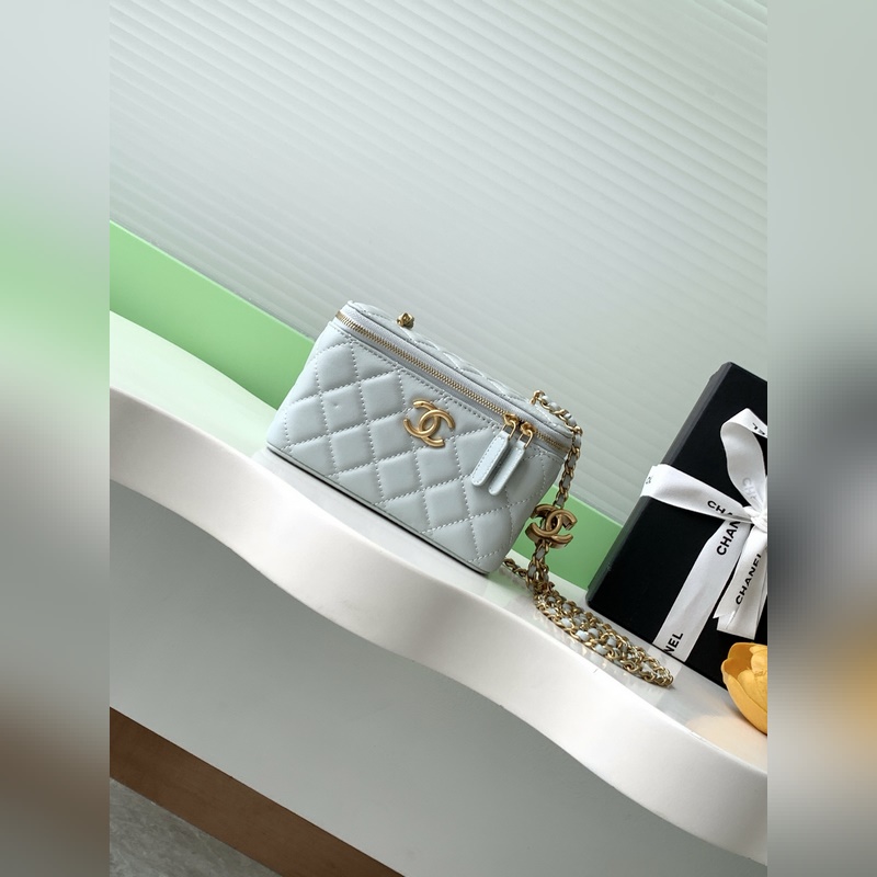 25b 신상 화장품 파우치 소형 사이즈로 정말 정교해요 고품격 에나멜 로고 더블 C 조절 버클이 포인트~ 점점 더 사랑하게 되는 이 파우치 가볍게 들고 다니기만 해도 예뻐요 어떤 옷과도 매치하면 완벽한 스타일을 완성해줘요 모델 번호 AP3940 사이즈 9.5-17-8 포장 포함