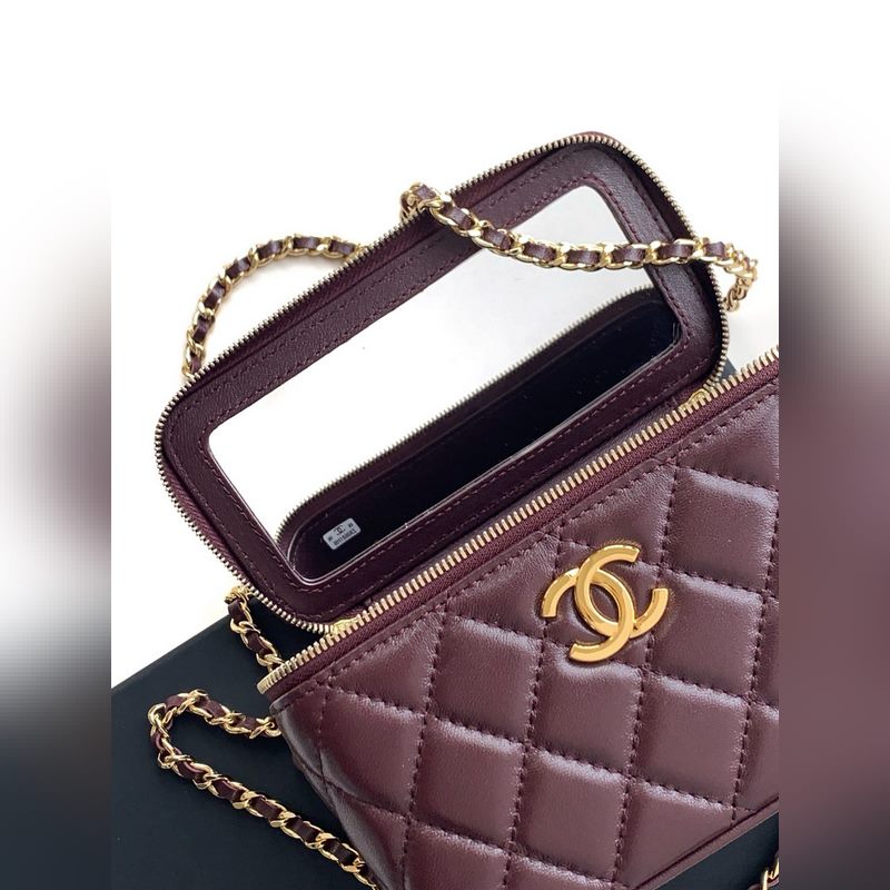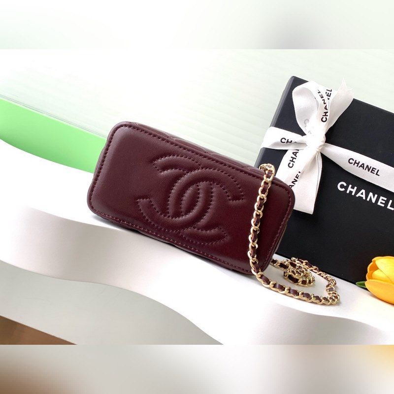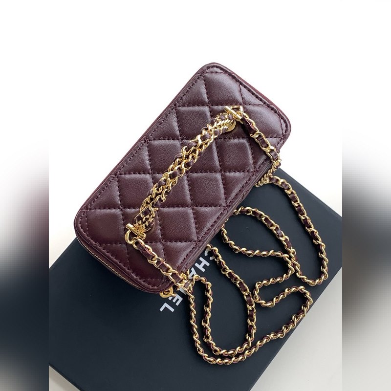 24b 최신형 립스틱 파우치 크로스 핸들 체인 장방형 박스백 오일드 가죽 모델 번호 AP4168 사이즈 9.5-17-8 포장 포함