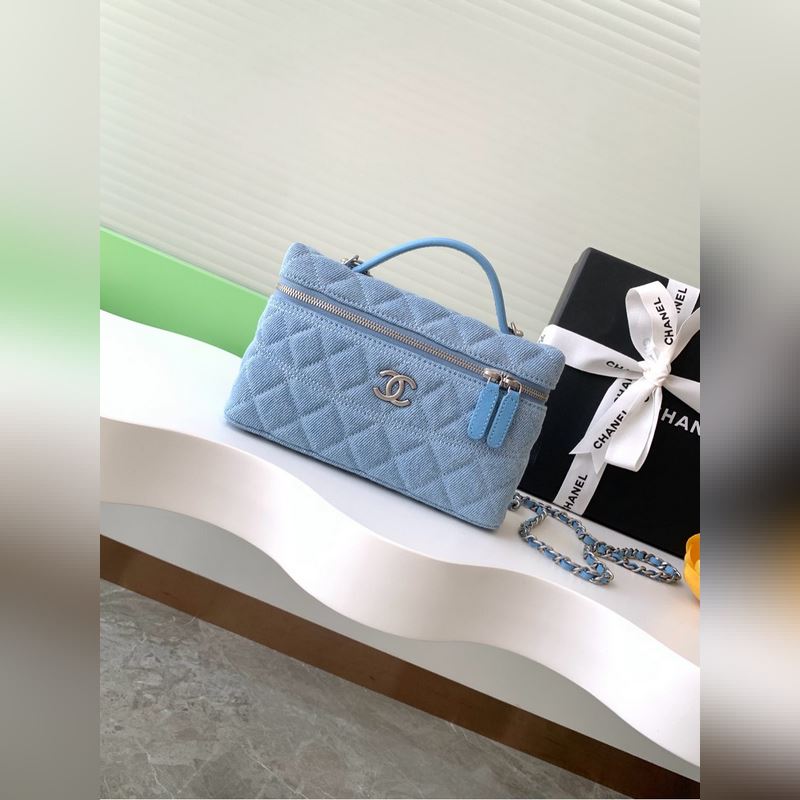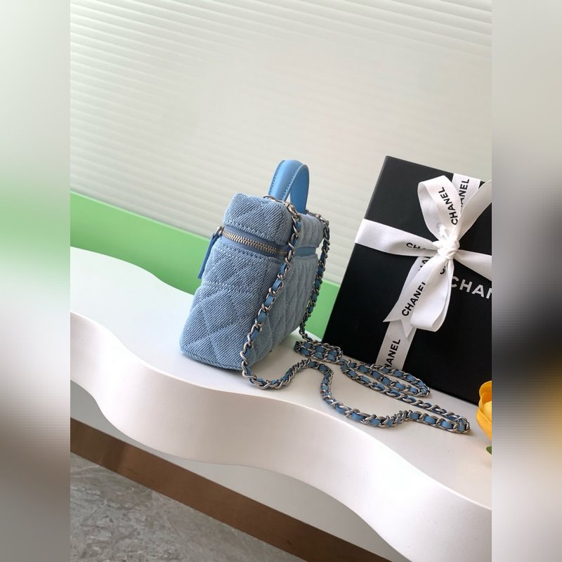 25C 도시락 가방 정교하고 작은 체인 핸드백 데님 소재에 큰 로고