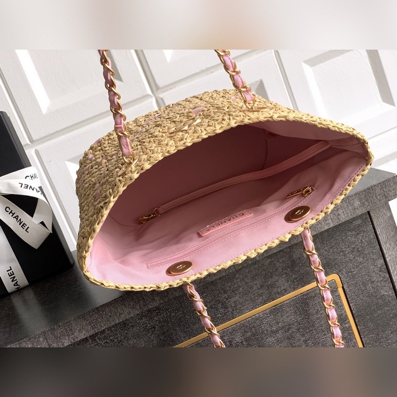 소호 사이즈 블랙 핑크 출고 완료 두 가지 컬러 샤넬(CHANEL) 위빙 쇼핑백 프렌치 스타일의 여유로움을 만나보세요. 위빙의 우아함이 일상과 자연스러움 정교함의 완벽한 조화를 이루며 장인 정신으로 엮어낸 부드러운 소재가 샤넬의 상징적인 캐주얼 우아함을 구현합니다. 등나무 무늬 디테일이 포인트 쇼핑백에 입체감을 더해 가볍게 일상 필수품을 담으면서도 고급스러운 품격을 잃지 않습니다. 다양한 장면의 우아한 동반자 아침 시장의 신선한 꽃과 채소부터 해변 휴가의 캐주얼한 가방 도시 스트릿 패션의 세련된 포인트까지. 손에 들고 다니기 편한 실용적인 디자인으로 여유와 정교함을 자유롭게 전환하세요. 디테일에서 드러나는 럭셔리 클래식한 더블 C 로고가 절제된 포인트를 더합니다. 내구성 있는 바닥 디자인이 가방을 보호합니다. 내부 지퍼 포켓으로 소품을 수납하세요. 자연스러운 질감으로 당신만의 여유로운 미학을 완성합니다. 소형 사이즈: 32 x 23 x 14cm 대형 사이즈: 41 x 27 x 15cm