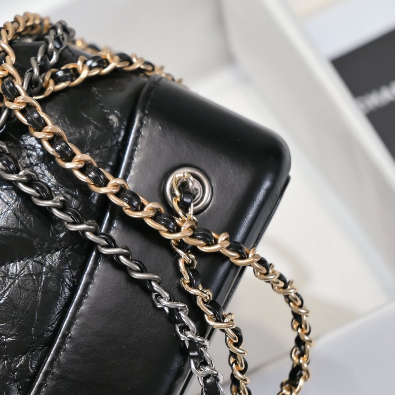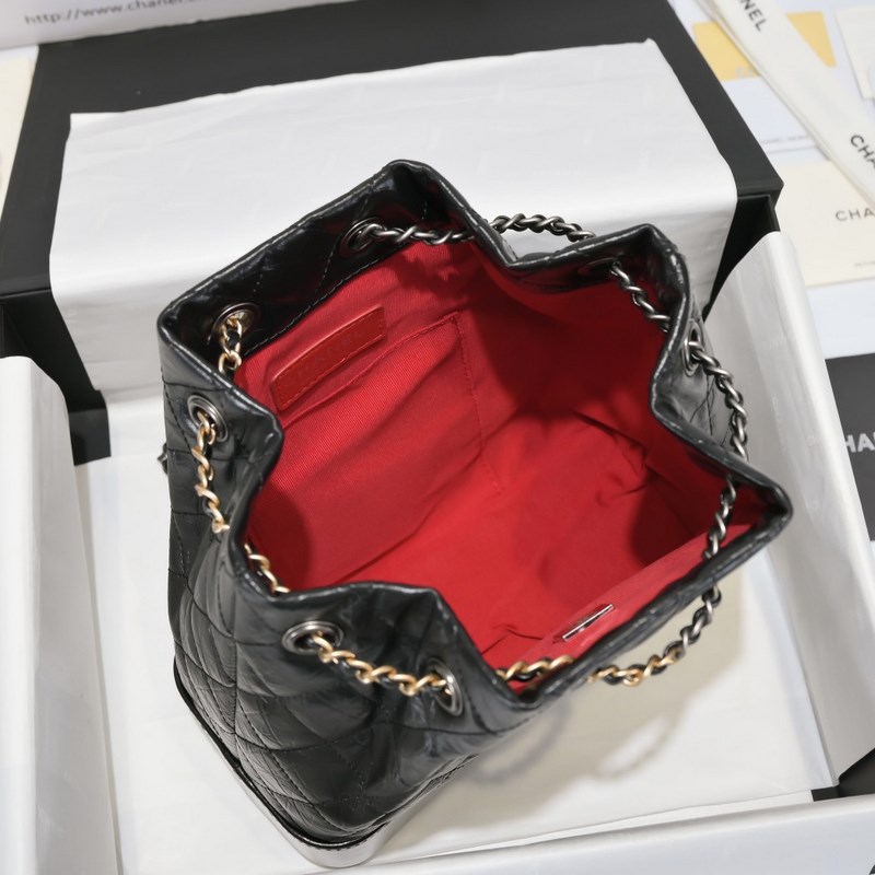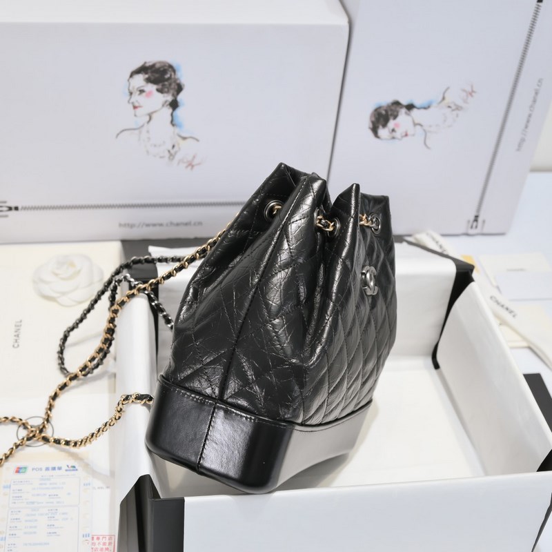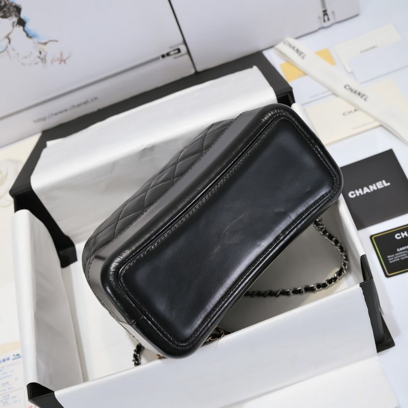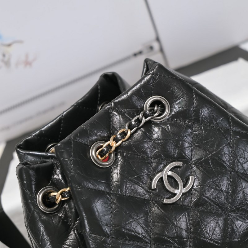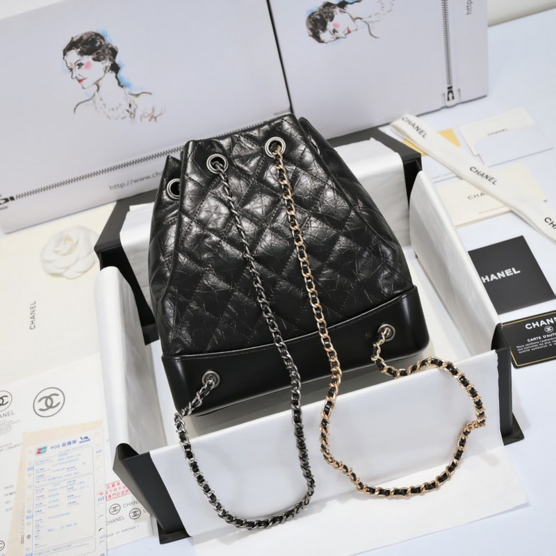 CHANEL GABRIELLE의 Wanderlust 컬렉션 백팩 소재: 빈티지 송아지 가죽 부드러운 소가죽 은 금 루테늄 색상의 금속 스타일 번호: A94485 크기: 23×22.5×10.5cm 색상: 검정