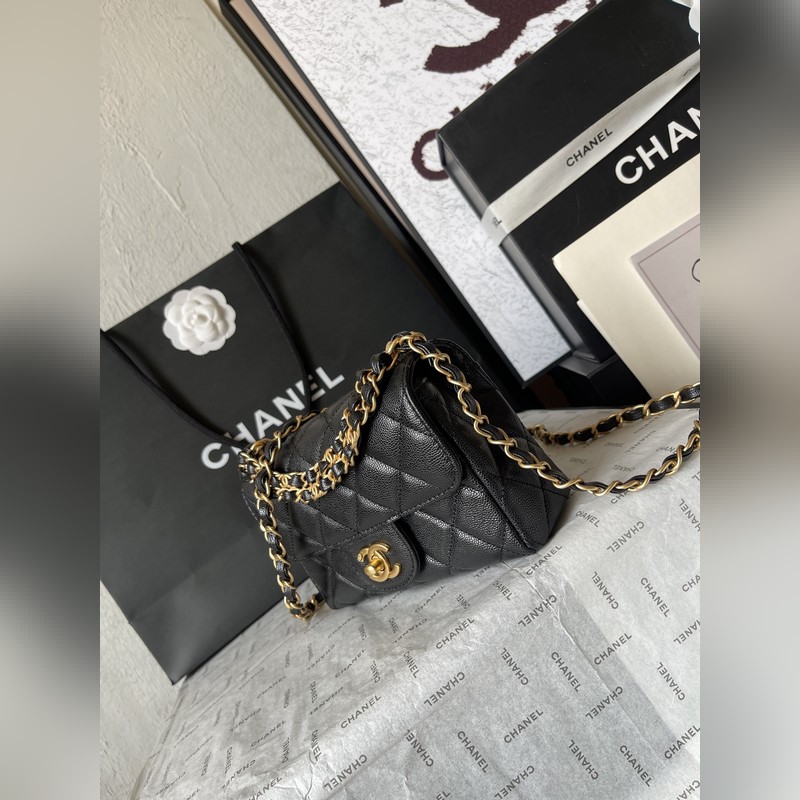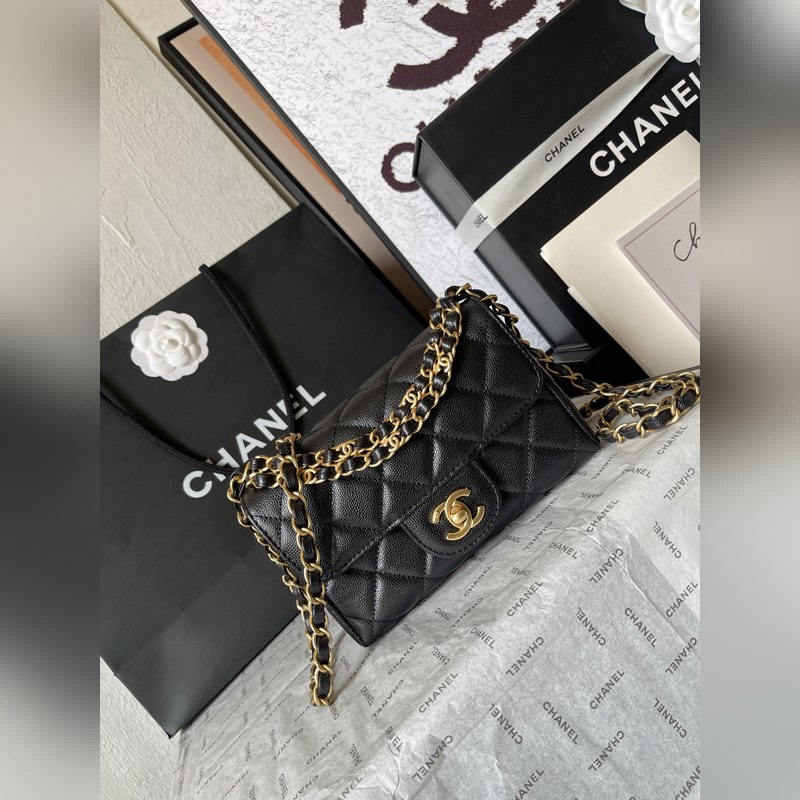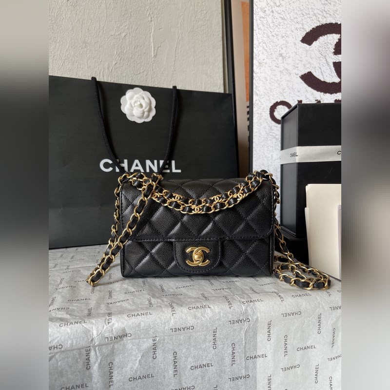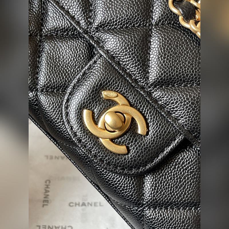 프랑스 하이엔드 맞춤 제품 CHANEL 샤넬 25P 더블 체인 CF 시리즈 AS5239 저항할 수 없는 대히트 아이템 송아지 가죽과 메탈 소재의 조합 더블 체인 소형 로고 장식 디자인 클래식한 헥사곤 패턴 내구성이 매우 뛰어나며 고급스러운 질감 정교하면서도 럭셔리한 감각 패션 감각을 극대화 사이즈: 18 x 13 x 5.5cm