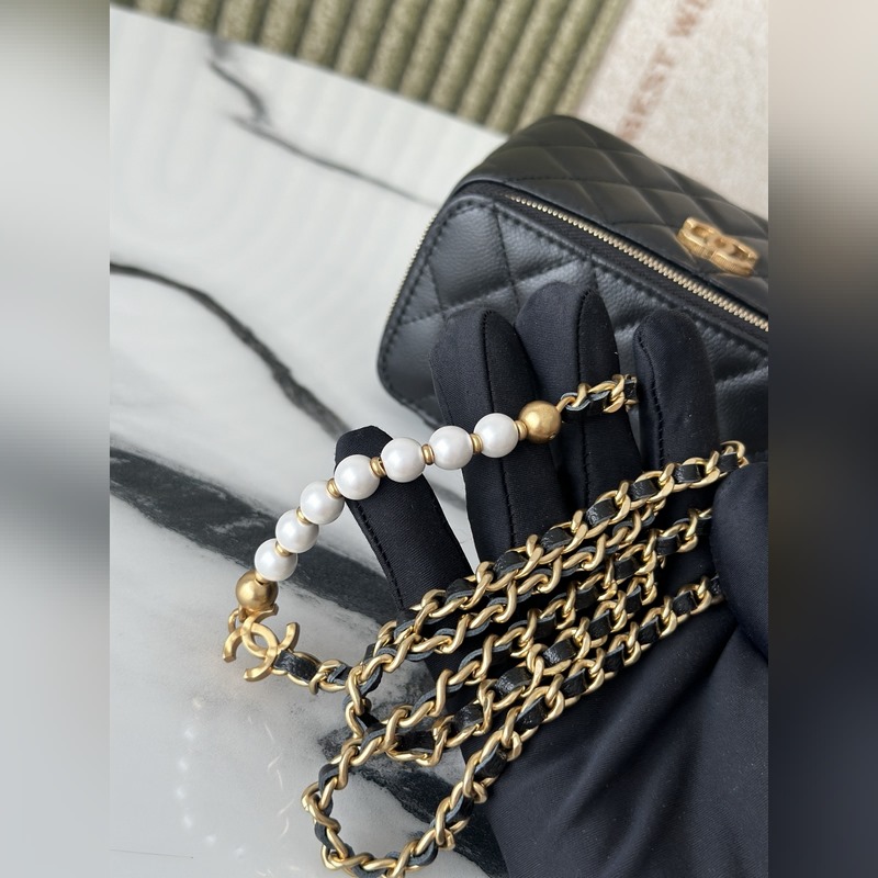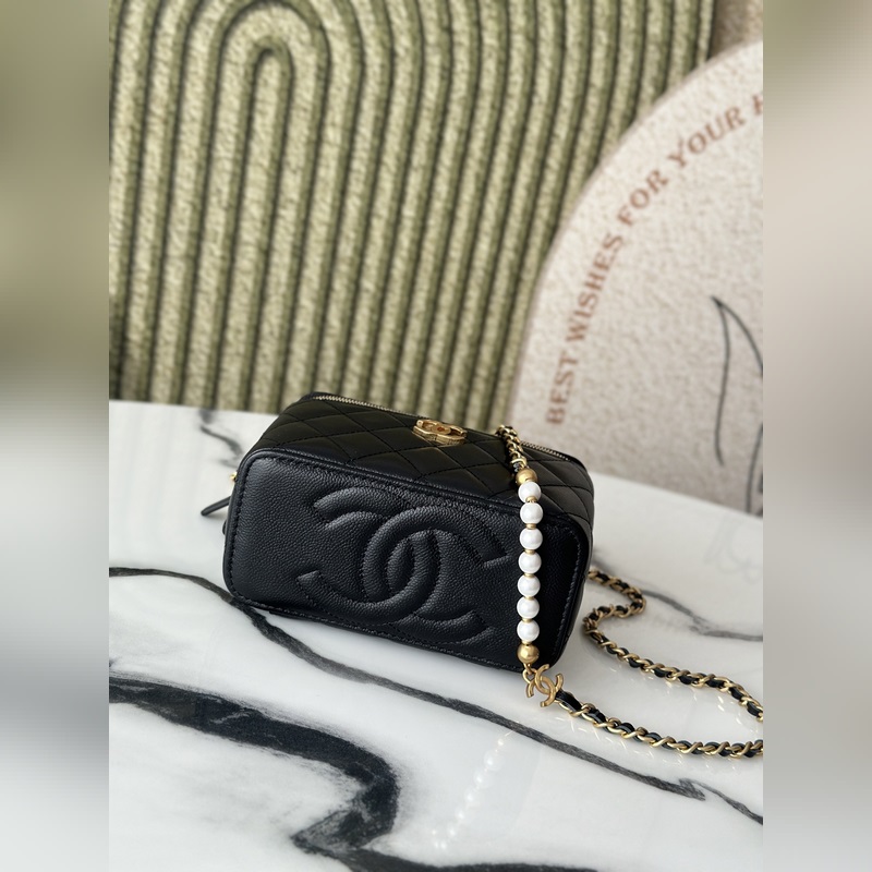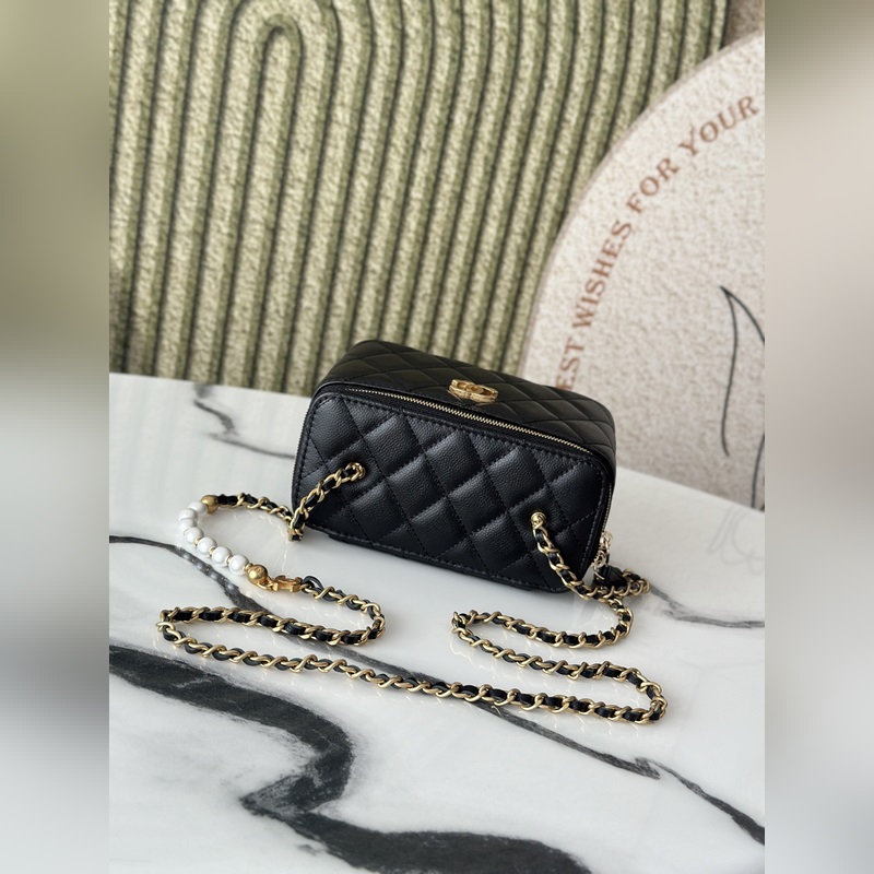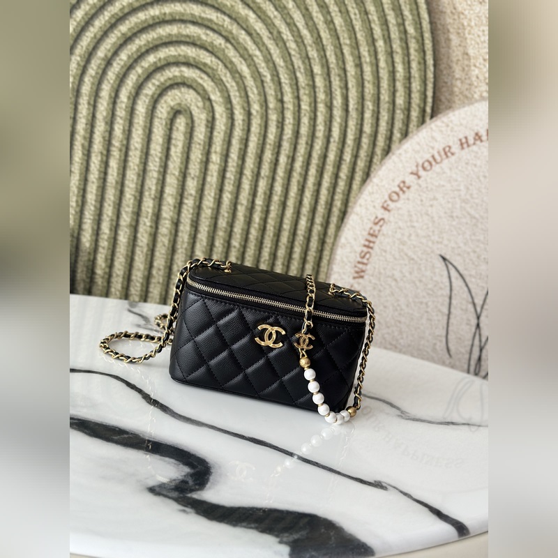 최신형 화장품 케이스 가방 CHANEL 25S 신상 진주 체인 2026년엔 작은 핸드백 하나 사고 싶어! 진주 장식 작고 정교함 모델 번호: 66045 블랙 사이즈: 9.5*17*8 포장 포함: