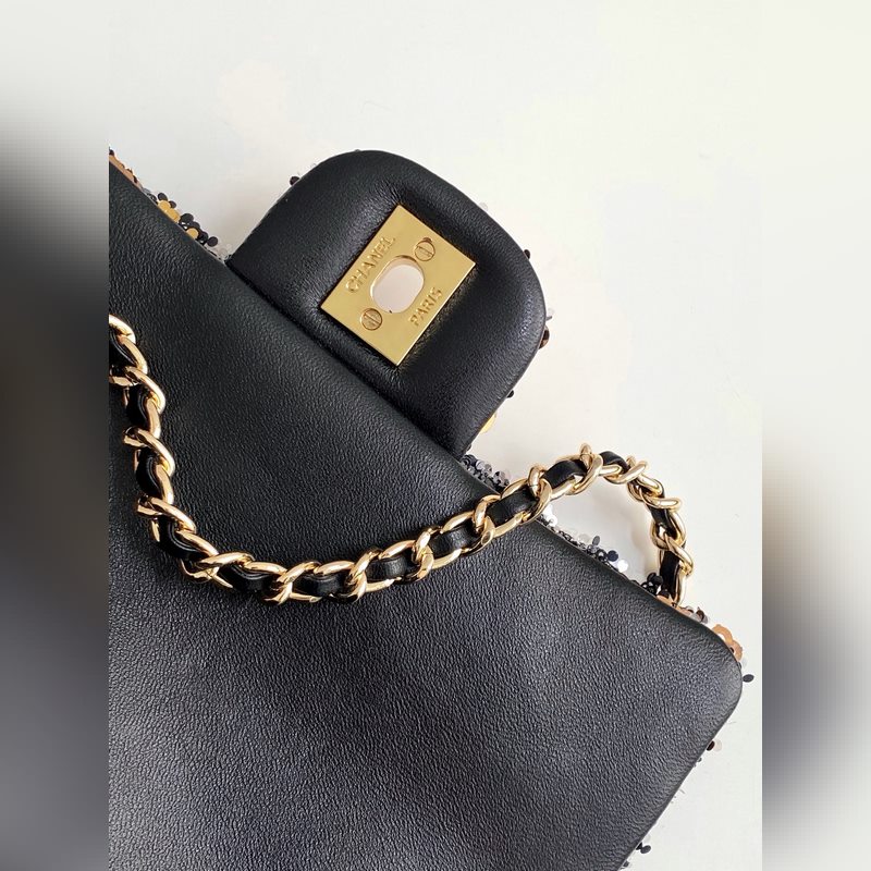 25c CF 초반짝이 비즈 시퀸 가을겨울 필터 SO BLACK 스트릿을 강타하는 초쿨한 디자인 실물은 정말 눈부시게 아름다워서 초희귀한 인기 비즈 아이템 가성비 최고! 이번 시즌 가장 구매할 만한 가방 색상과 비즈의 조합 반짝임이 사랑스러워 그 매력을 무한히 증폭시켜 우아함과 세련됨 트렌디함 모두를 상징하는 아이템으로 디너백으로도 완벽 평생 소장할 만한 가치가 있는 모델 번호 AS4561 사이즈 14-21-8 포장 포함