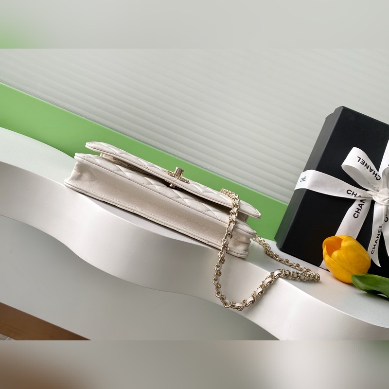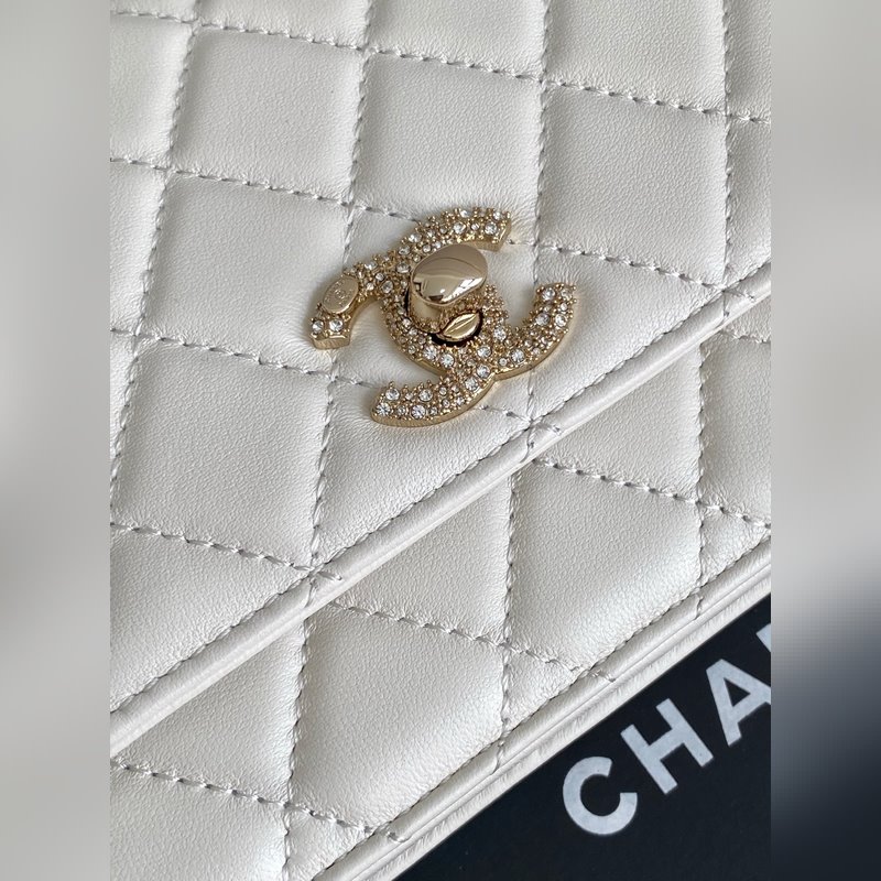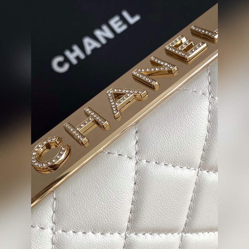 샤넬 25s 드로어스 훅 트렌디 CC 반짝이는 고급스러운 느낌 샤넬 25s 다이아몬드 버클 트렌디CC WOC 실물은 정말 절세미인 천금 같은 느낌. 기존 트렌디CC보다 더 정교해졌어요. 체인 구멍과 금속 스트립 위의 알파벳 모두 작은 다이아몬드가 박혀 있어 각기 다른 각도에서 반짝이는 빛을 발합니다. 보기에 마치 하나의 예술품 같습니다 가방 버클의 더블 C 로고에도 작은 다이아몬드가 가득 박혀 있고 가방 본체는 양가죽 소재로 정교함이 극대화되었습니다. WOC 형태의 실용적인 디자인으로 휴대폰과 일상 소지품을 수납하기에 적합합니다. 모델 번호 AP4323 패키지 포함 사이즈 12-19-3.5
