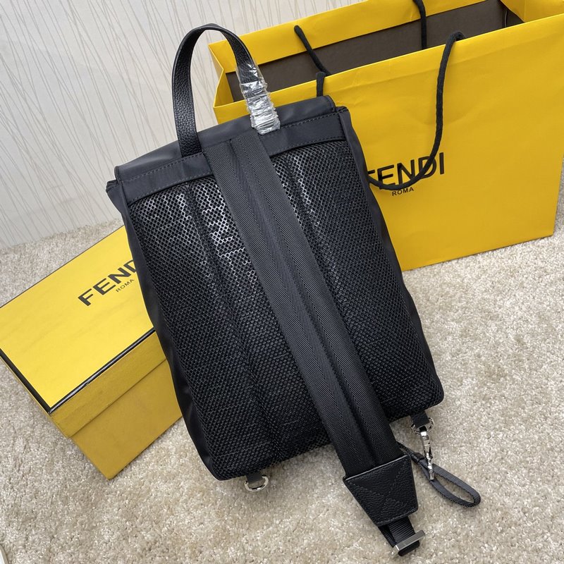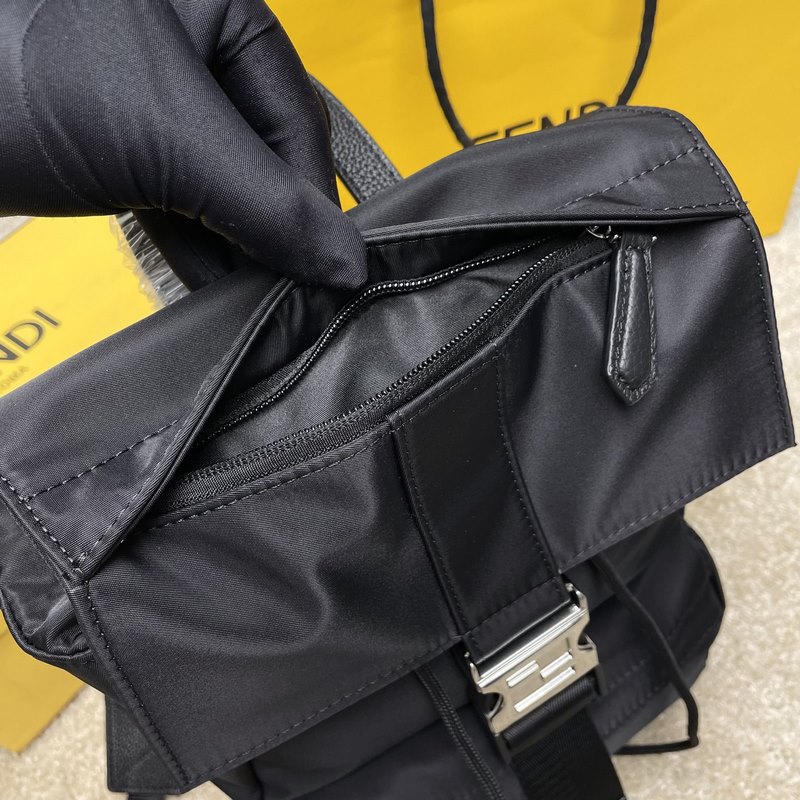 원래의 단일 품질 튼튼한 남성용 배낭 2024년 봄과 여름을 위한 최고급 소가죽을 사용한 새로운 나일론 소재 앞면과 덮개에 지퍼 포켓 뒷면에 ff 패턴의 하이테크 메시 소재 정통 개발 백화점 카운터와 조화를 이루는 디테일 안쪽의 노란색 내부 라벨을 찾아보세요 크기: H30*22*11