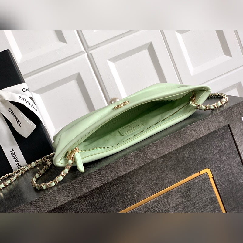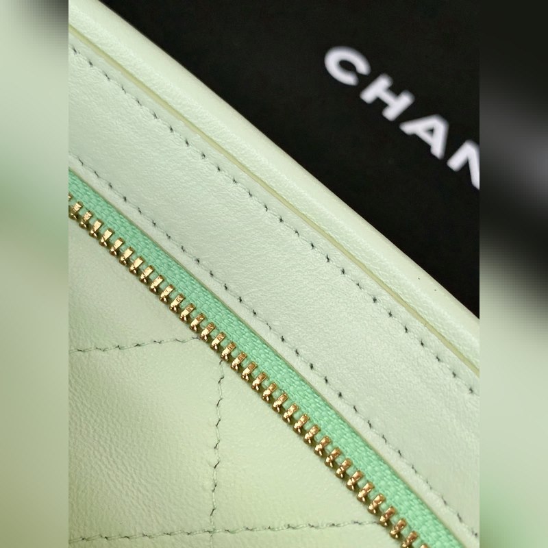 애플 그린 CHANEL 25S 핸드백 누가 보면 안 반할 수 있겠어요? 골드 더블 C 로고와 블랙 골드 숄더 스트랩 체인 디자인 작고 정교한 실루엣에 첫눈에 반해버리네요~~ 손가락 가방 용량으로 키 파우더 대형 핸드폰 파워뱅크 등 모두 넉넉히 수납 가능! 가장 큰 매력은 이 체인 디자인 고급스러운 느낌을 만끽할 수 있어요. 핸드백으로도 디너백으로도 활용 가능 가성비 폭발 완벽한 점 사이즈: 14x24x5cm