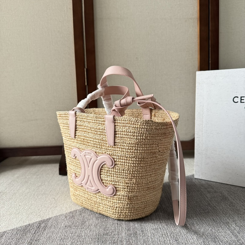 CELINEINE TEEN 식물 소재와 소가죽의 부드러운 클래식 바구