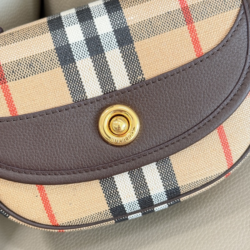 미니 하이랜즈 정교한 가방 디자인은 아웃도어 디자인 철학을 담아 제작되었습니다. 면과 리넨 혼방 소재를 사용해 이탈리아 공방에서 정교하게 제작되었으며 부드러운 송아지 가죽 장식과 면 안감이 적용되었습니다. 장식용 자수로 제작된 버버리 체크 패턴이 적용되었으며 트렌치코트에서 영감을 받은 코팅 마감 처리가 특징입니다. 상단 손잡이로 손에 들고 다닐 수 있으며 조절 가능한 가죽 숄더 스트랩으로 어깨에 메거나 크로스백 스타일로 연출 가능합니다. 사이즈 19.5 x 11cm. 모델 2401