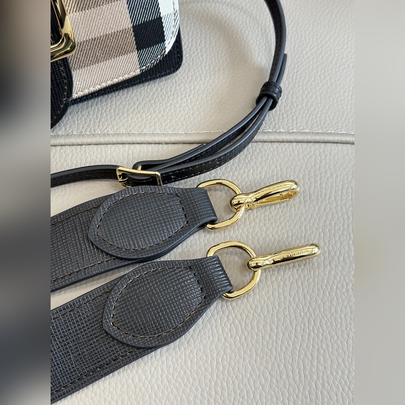 B가 The Buckle 버클 백 고급스러운 질감의 가죽과 잉글랜드 정방직 하우스 체크 패턴 패널을 선별하여 정교한 수작업으로 마감된 스티치 디자인을 더해 이탈리아 고급 공방에서 장인이 제작했습니다. 군복 스타일의 광택 있는 금속 버클 장식은 전통적인 트렌치코트에서 영감을 받아 버클 백이라는 이름이 붙여졌습니다. 본 제품은 소형 사이즈로 일상 사용에 적합하며 두 개의 숄더 스트랩이 포함되어 있어 크로스백 숄더백 또는 핸드백으로 활용 가능 19.5*5*12cm 모델 번호 460160
