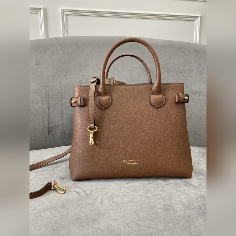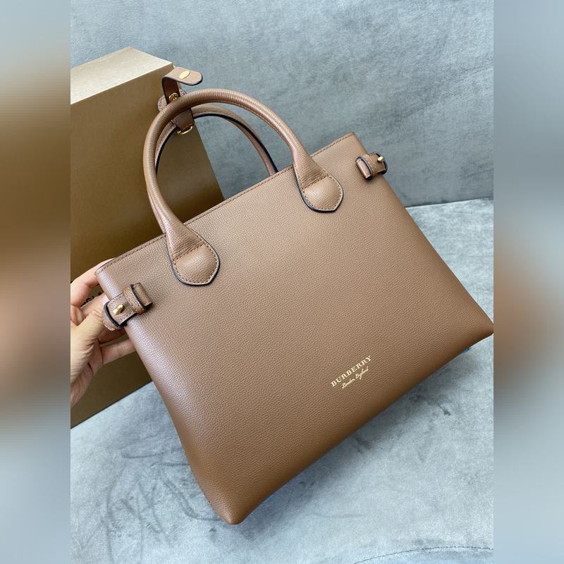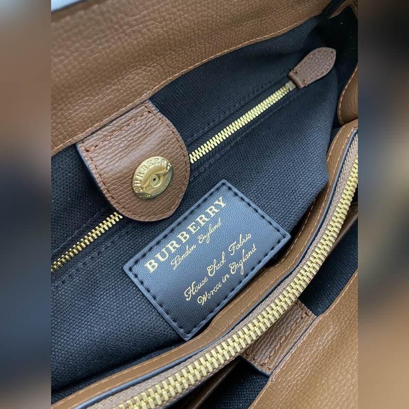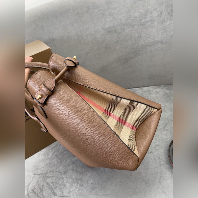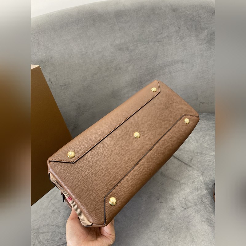 B가 상징적인 The Banner 34cm 배너 핸드백 영국산 정교한 방적의 클래식 하우스 체크 무늬 면 소재 패널을 엄선하여 고급스러운 그레인 소가죽과 조화시켰습니다. 34 x 16 x 25cm 7941