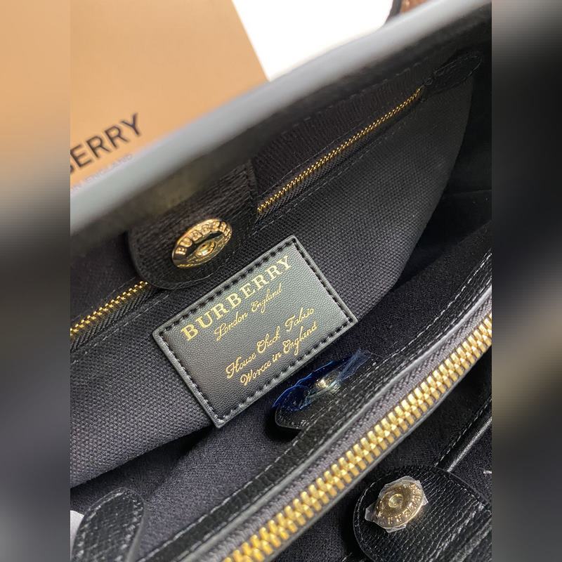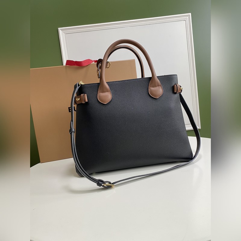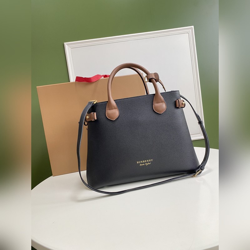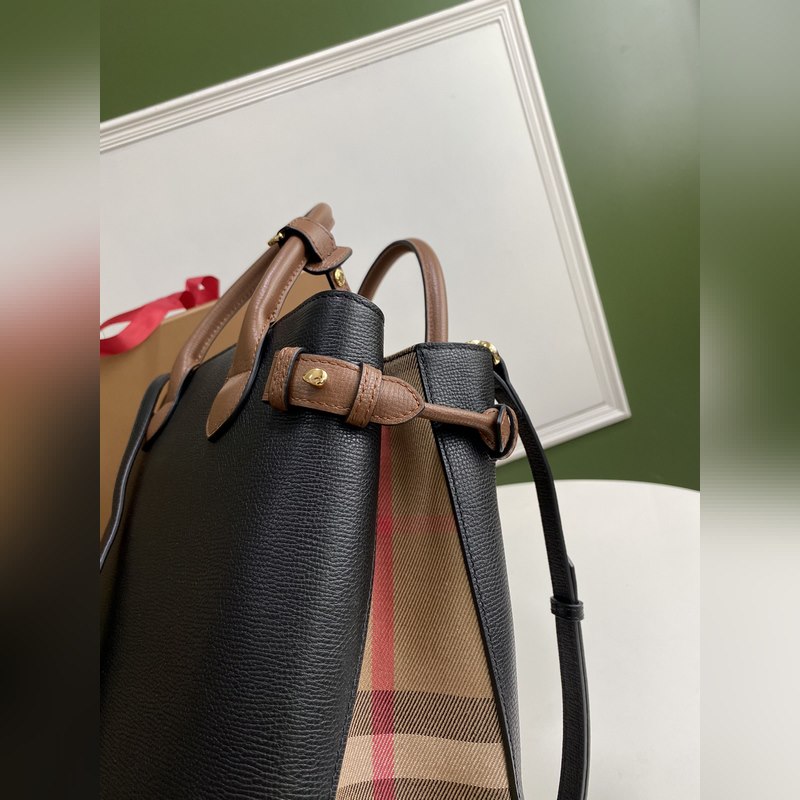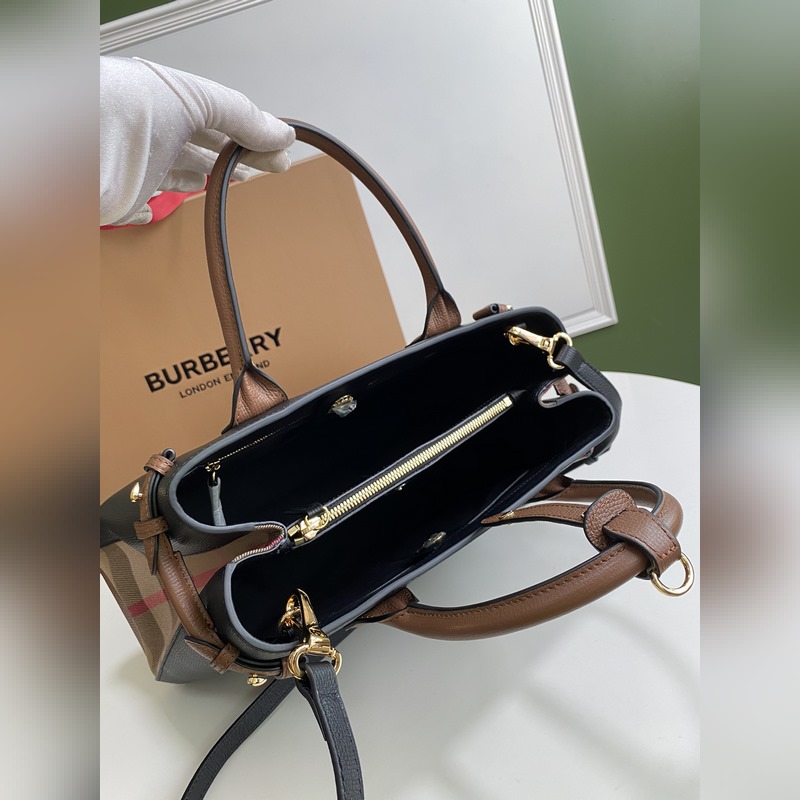 B가 상징적인 The Banner 34cm 배너 핸드백 영국산 정교한 방적의 클래식 하우스 체크 무늬 면 소재 패널을 엄선하여 고급스러운 그레인 소가죽과 조화시켰습니다. 34 x 16 x 25cm 7941