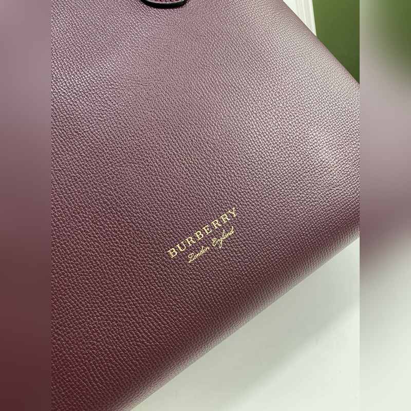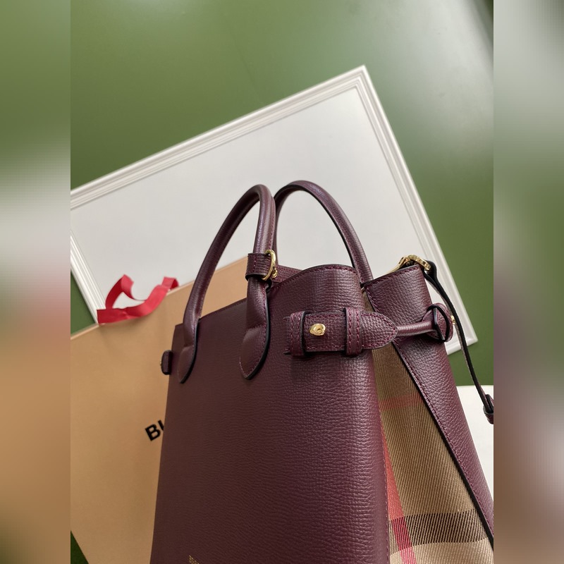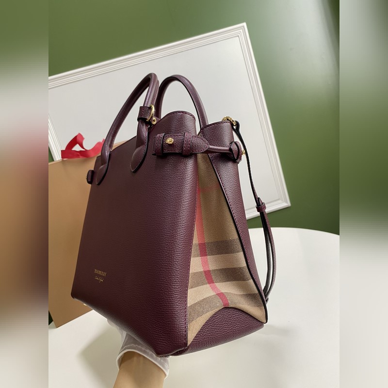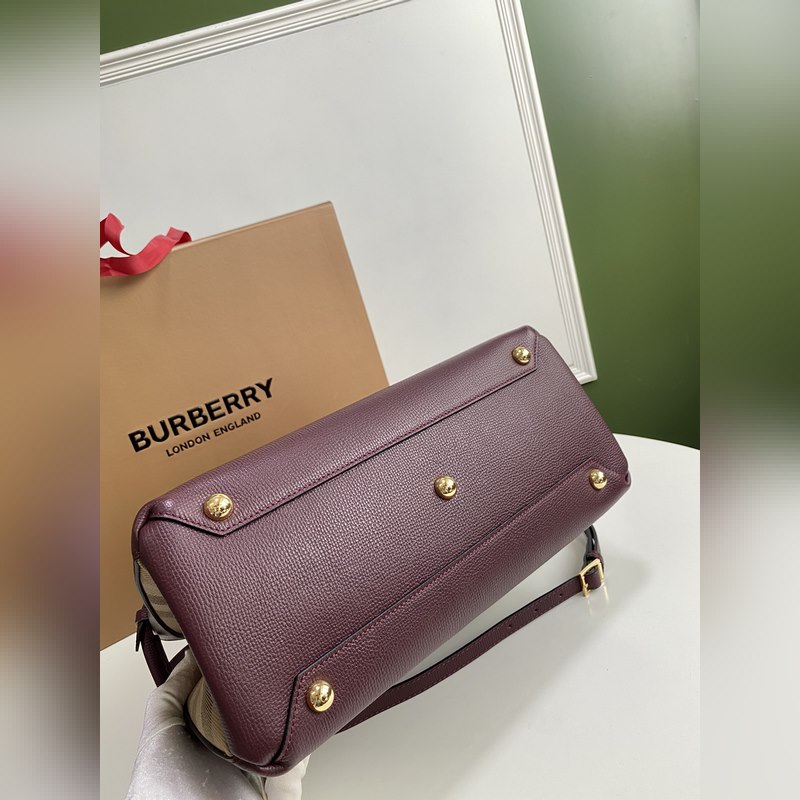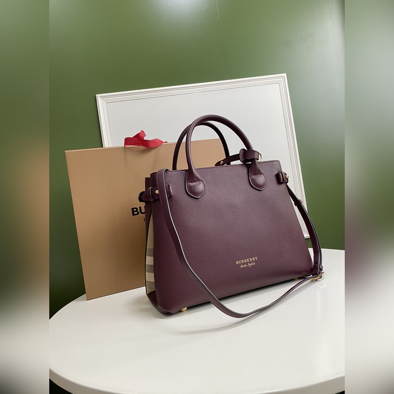 B가 상징적인 The Banner 34cm 배너 핸드백 영국산 정교한 방적의 클래식 하우스 체크 무늬 면 소재 패널을 엄선하여 고급스러운 그레인 소가죽과 조화시켰습니다. 34 x 16 x 25cm 7941
