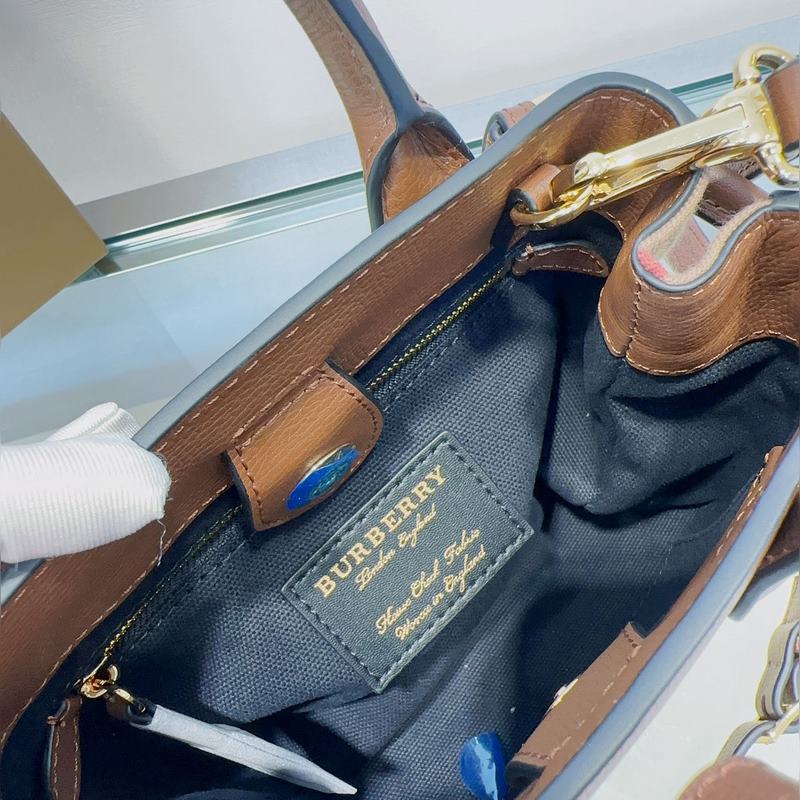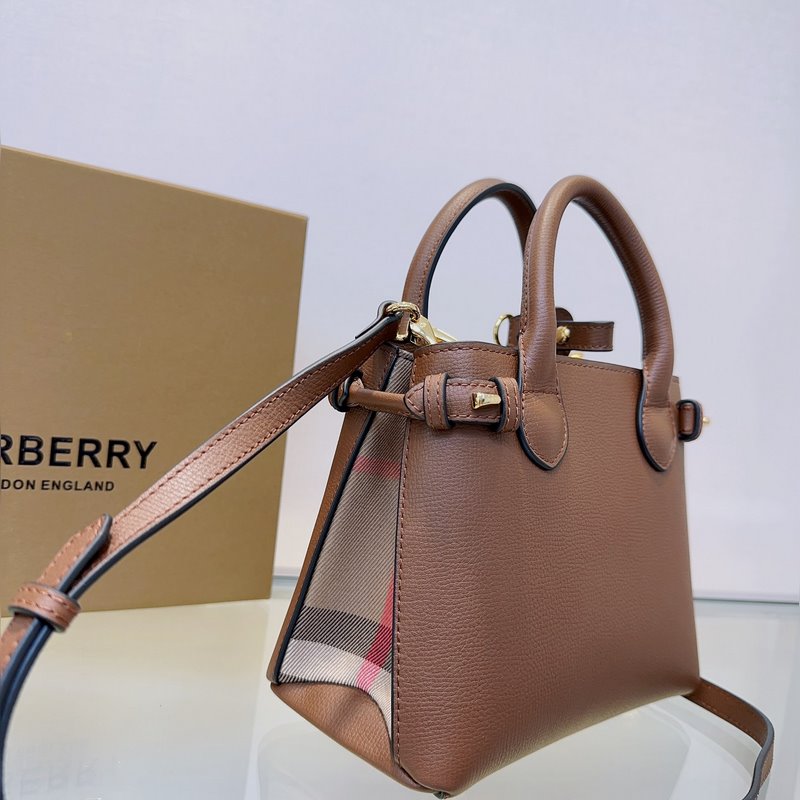 B가 상징적인 The Banner 배너 핸드백 영국산 정교한 스핀드레드 클래식 하우스 체크 무늬 면 소재 패널을 엄선하여 고급스러운 소가죽 트림과 조화를 이루었습니다. 22 x 12 x 17cm 712160