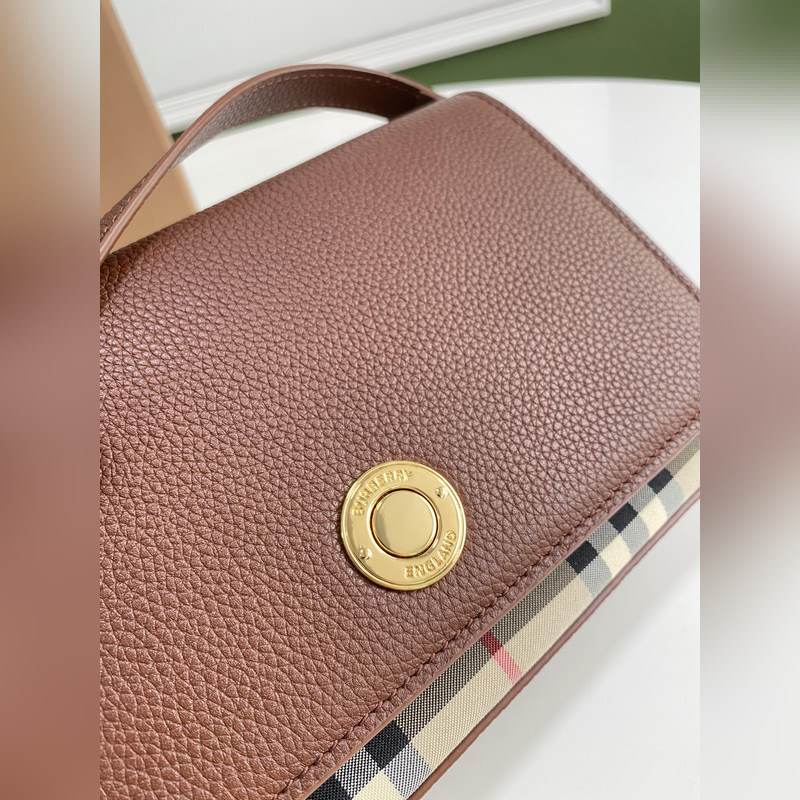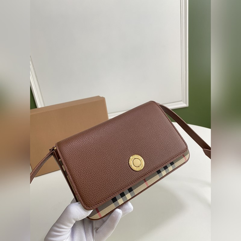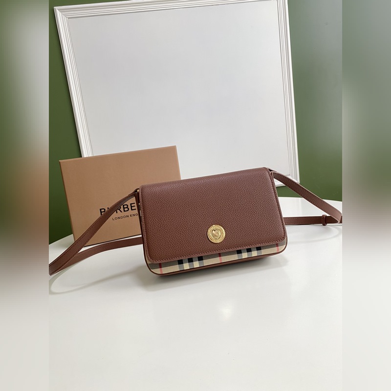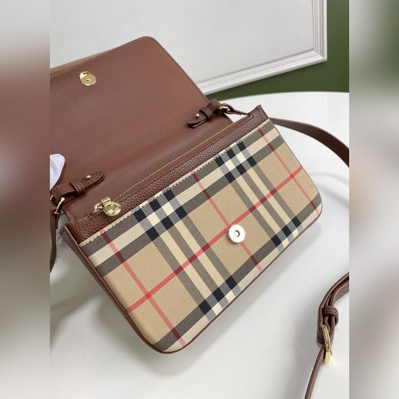 B사의 정교한 크로스백은 이탈리아산 무두질 그레인 가죽과 빈티지 체크