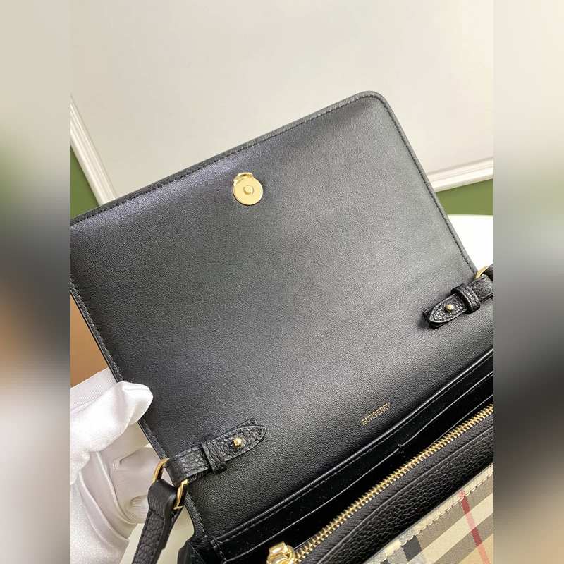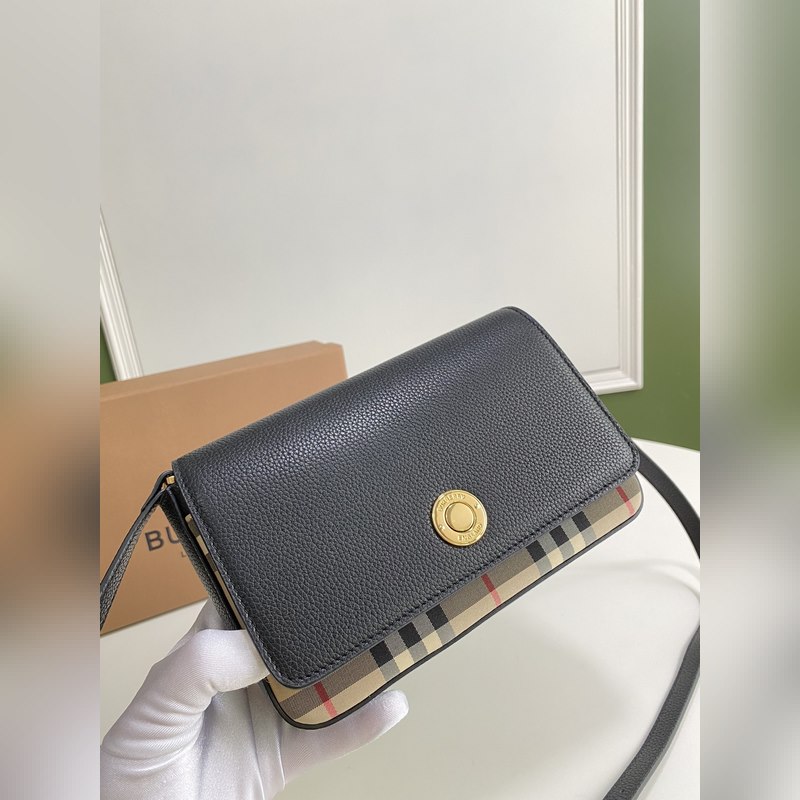 B사의 정교한 크로스백은 이탈리아산 무두질 그레인 가죽과 빈티지 체크