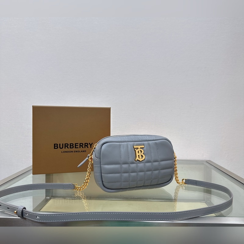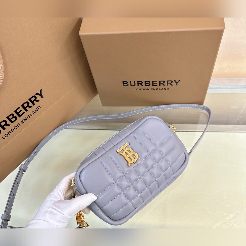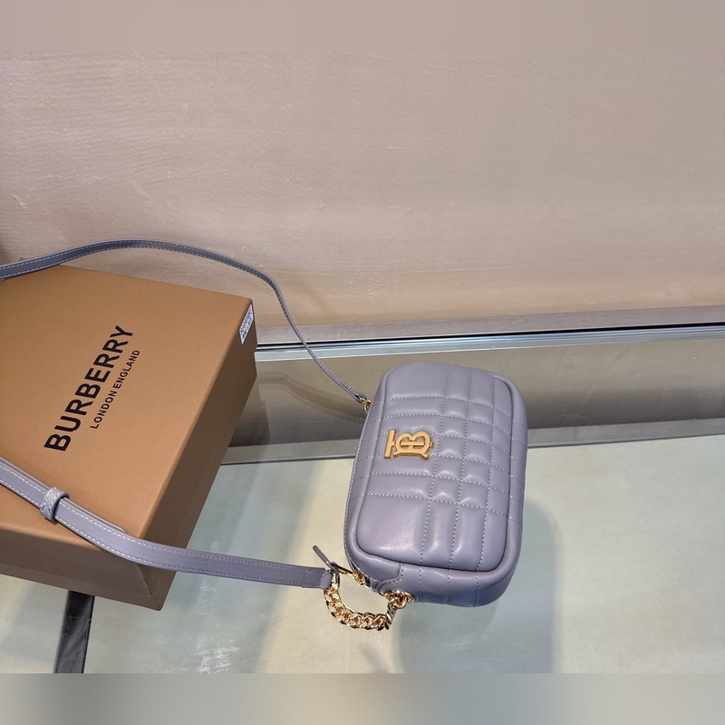B가 부드러운 퀼팅 디자인 미니 19cm Lola 카메라 백. 이탈리아산 양가죽 소재로 정교하게 제작되었으며 Thomas Burberry 로고가 장식되어 있고 광택 있는 체인 스트랩이 특징입니다. 어깨에 메거나 크로스백 스타일로 연출 가능합니다. 모델 번호 0481 19 x 5.5 x 11cm