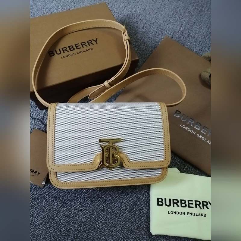 B가 TB 소형 투톤 캔버스 가죽 버클 백 실루엣이 탄탄한 숄더백으
