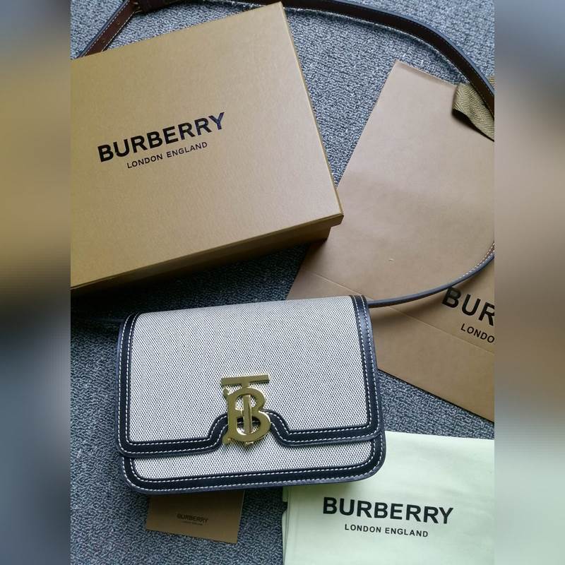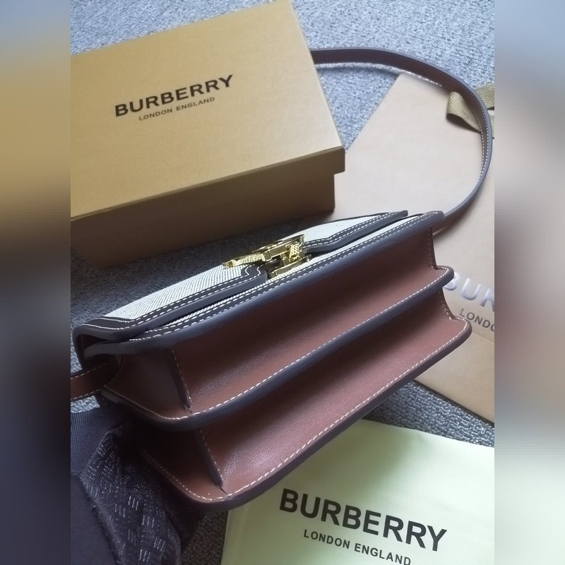 B가 TB 소형 투톤 캔버스 가죽 버클 백 실루엣이 탄탄한 숄더백으