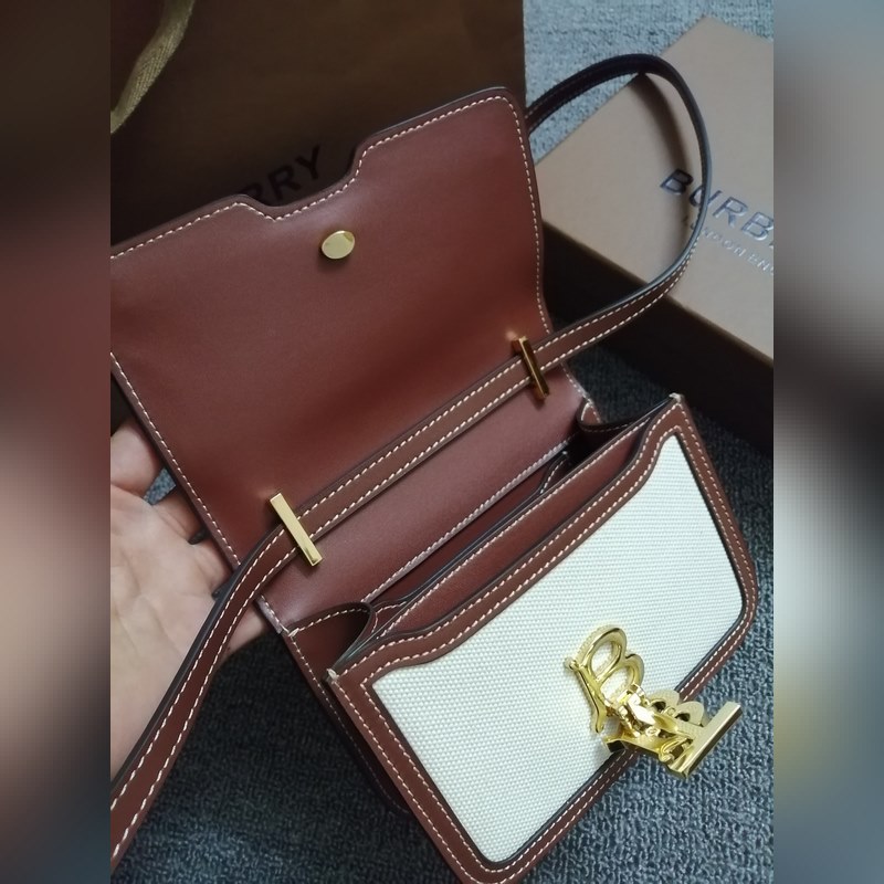 B가 신상 TB 미니 전용 로고 투톤 캔버스 가죽 조합 버클 백 단정한 실루엣의 숄더백으로 투톤 캔버스와 매끈한 가죽으로 제작되었으며 버클 장식에 Thomas Burberry 영감을 받은 전용 로고가 장식되어 있습니다. 크로스백이나 핸드백 스타일로 자유롭게 변형 가능합니다. 제품 번호: 90238 사이즈: 17 - 6 - 12.5cm. 84388080