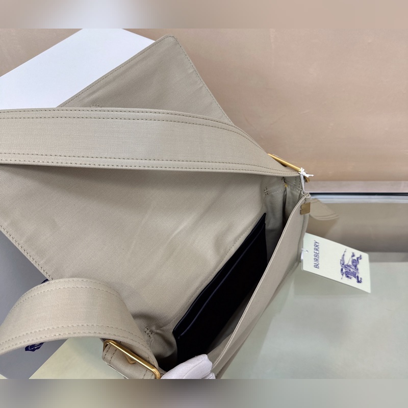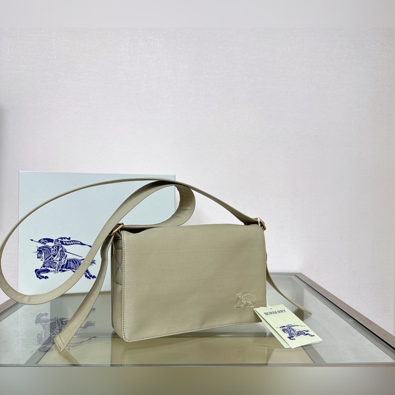 B가 신상 숄더백은 면 혼방 소재로 제작되었으며 B 브랜드의 상징적인 트렌치코트에서 영감을 받았습니다. 승마 기수 로고 (EKD) 자수가 장식되어 있으며 가방 끈에는 B 로고 버클이 달려 있습니다. 조절 가능한 크로스백 스트랩 상단 플랩은 자석 버튼으로 여닫을 수 있으며 내부 포켓 브러시드 메탈 디테일 전면에 마술 기사 엠블럼 (EKD) 자수 장식 사이즈 25 x 8 x 16cm