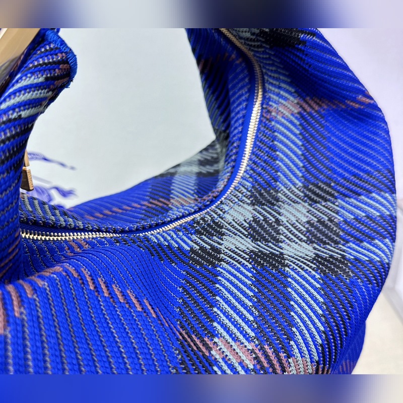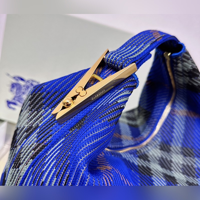 B가 부드럽고 탄력 있는 클립 백 이탈리아 니트 소재로 제작되었으며 버버리 체크 패턴이 장식되어 있습니다. 가벼운 질감에 내부 포켓이 없는 디자인입니다. 옷핀 모양의 걸이 고리에는 버버리 로고가 새겨져 있으며 곡선형 상단 핸들을 쉽게 고정할 수 있습니다. 지퍼 여밈 브러시드 메탈 디테일 옷핀 걸쇠에 새겨진 버버리 알파벳 로고 사이즈 28 16.5x 33.5cm